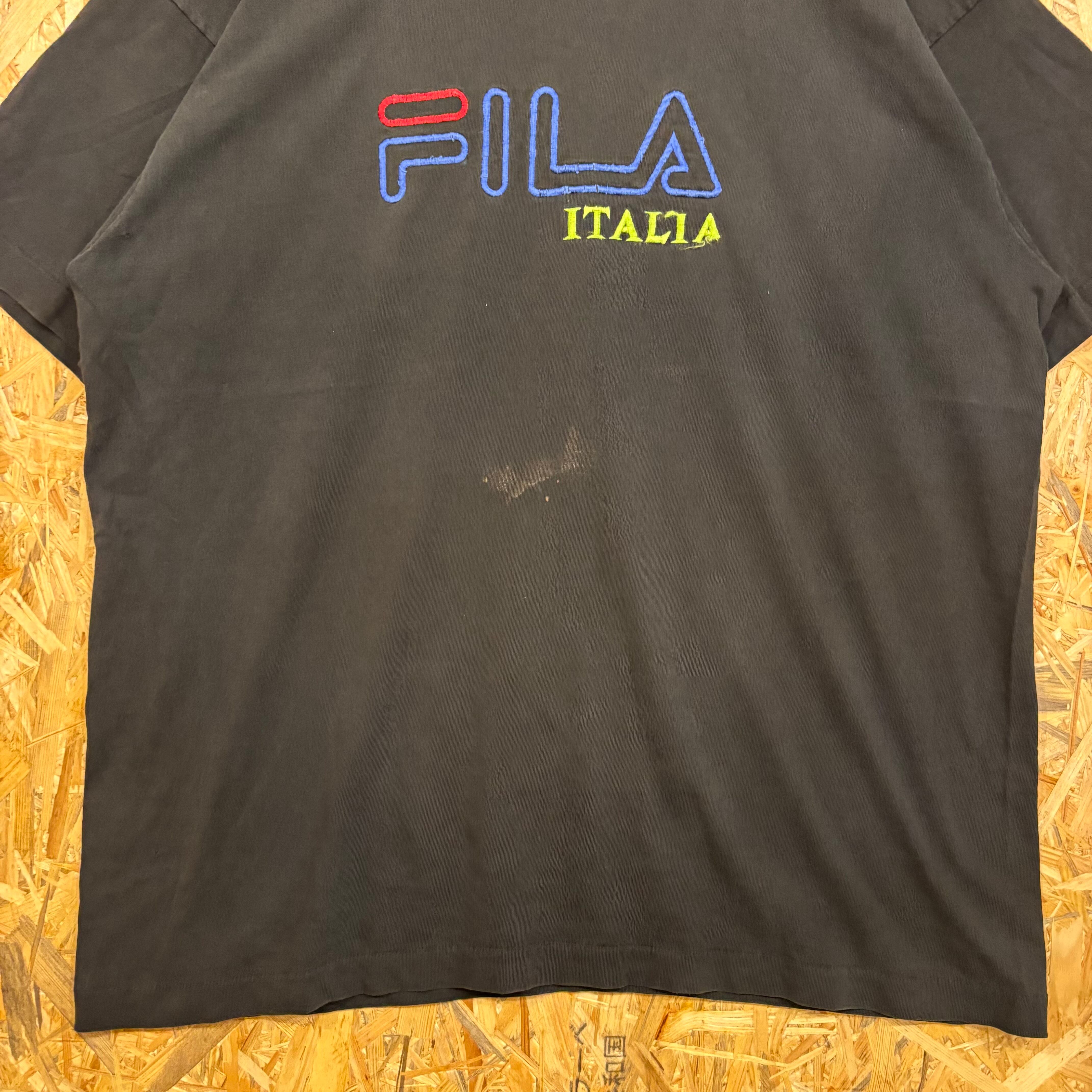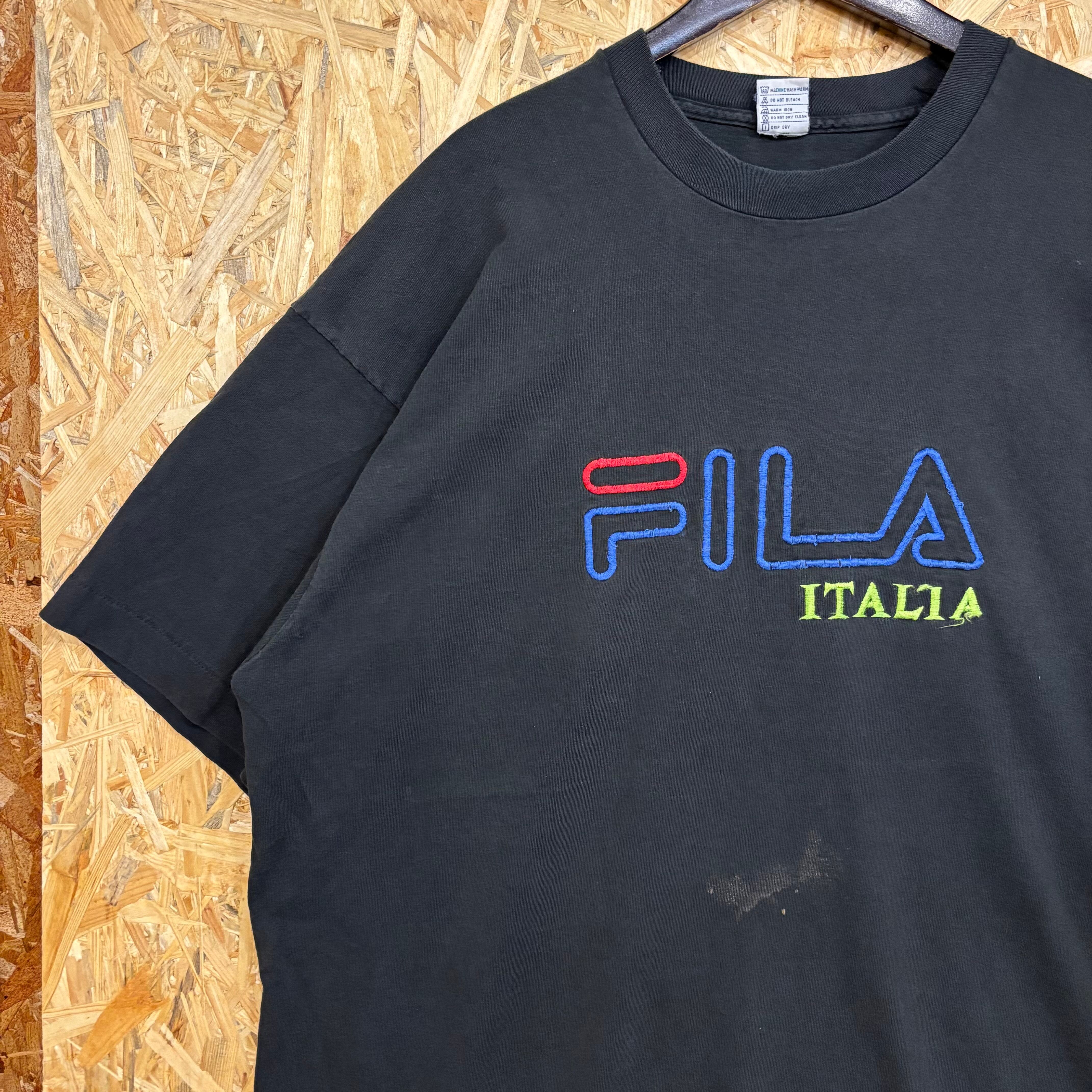 2780 90s〜 90年代〜 USA製 FILA フィラ ロゴ プリント Tシャツ ブラック 黒 シングルステッチ 古着 メンズ vintage