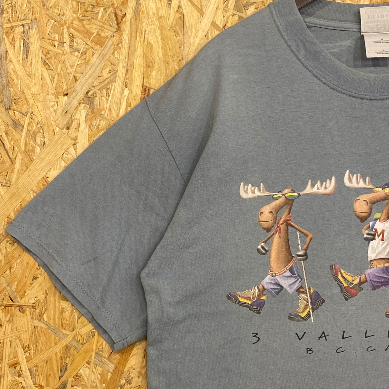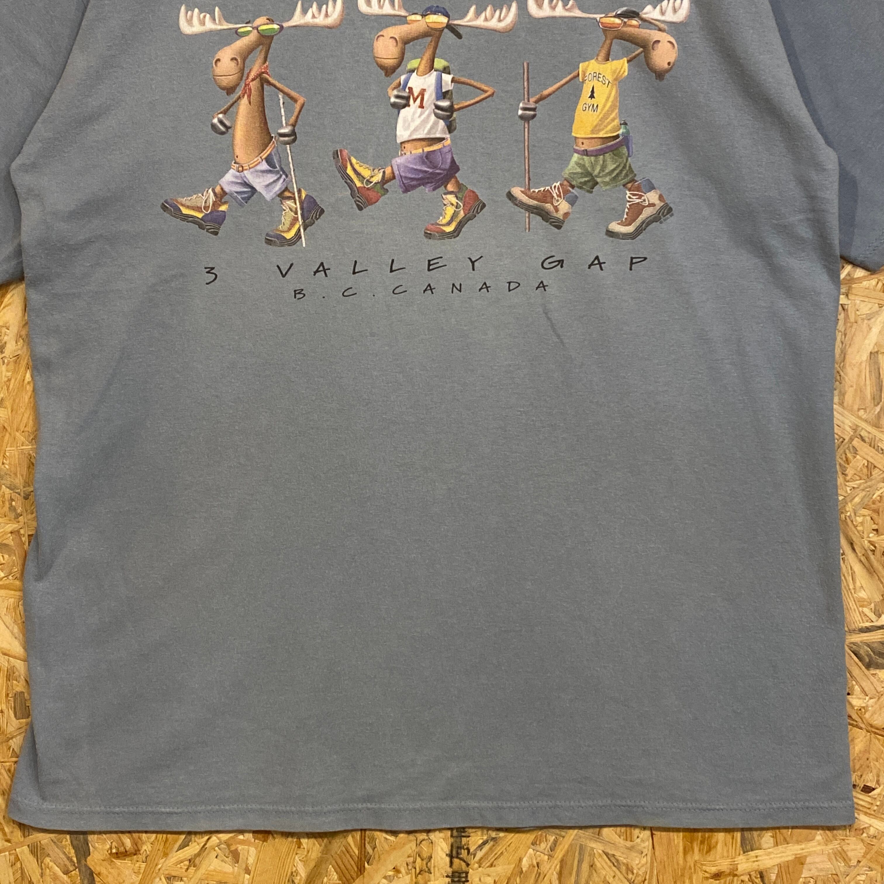 2792 00s 00年代 GILDAN ギルダン Canada カナダ ヘラジカ アニマル キャラクターイラスト 水色 灰色 Tシャツ 古着 メンズ vintage