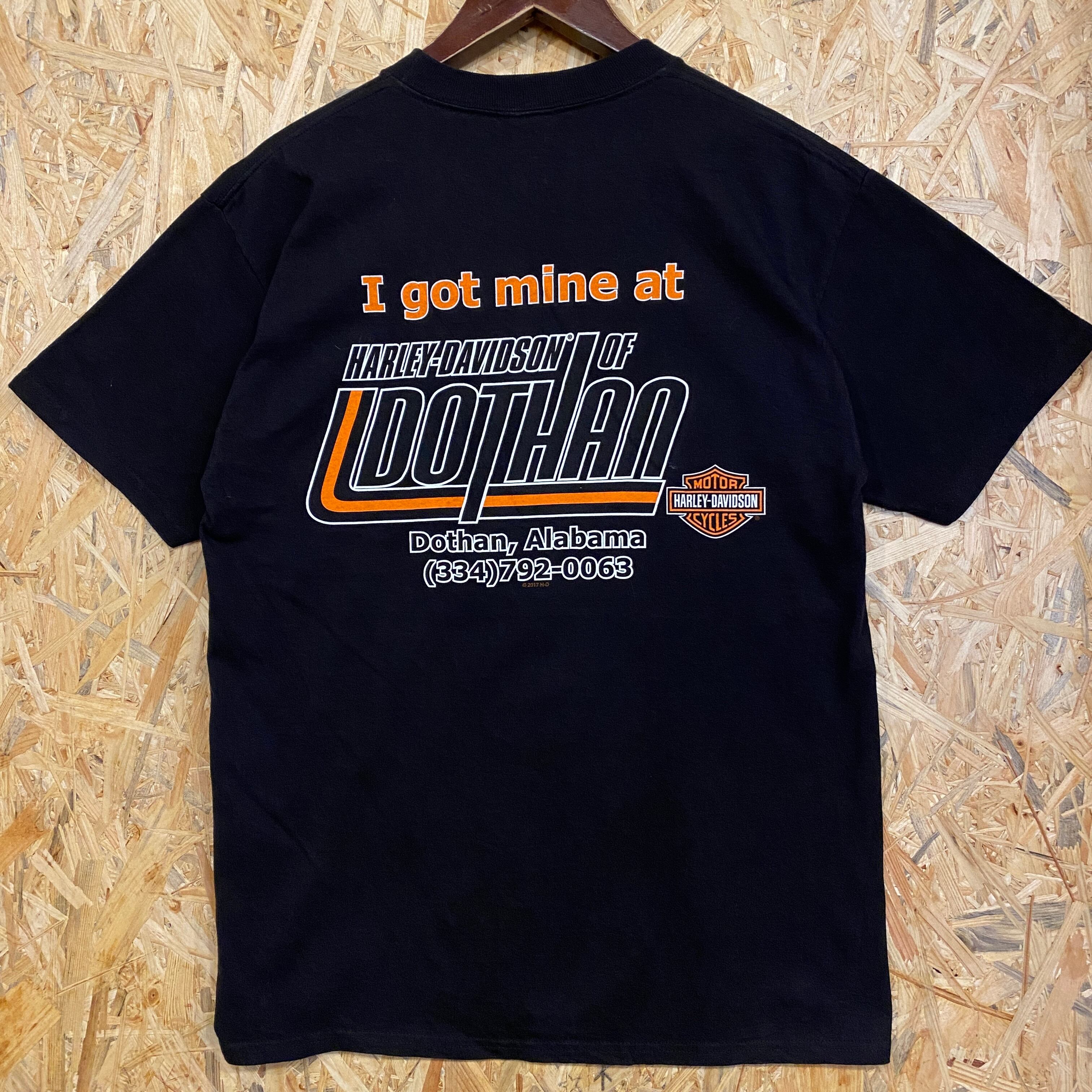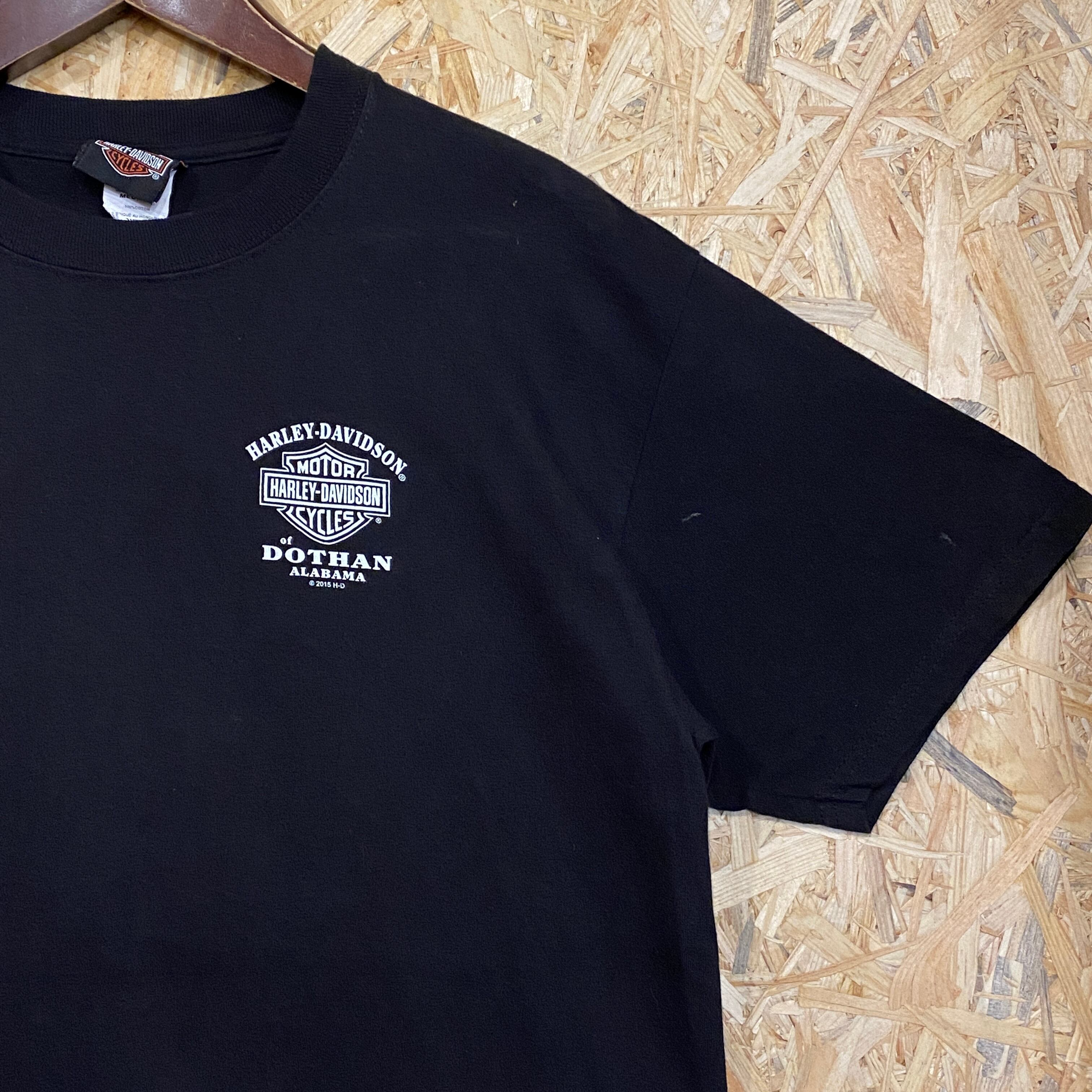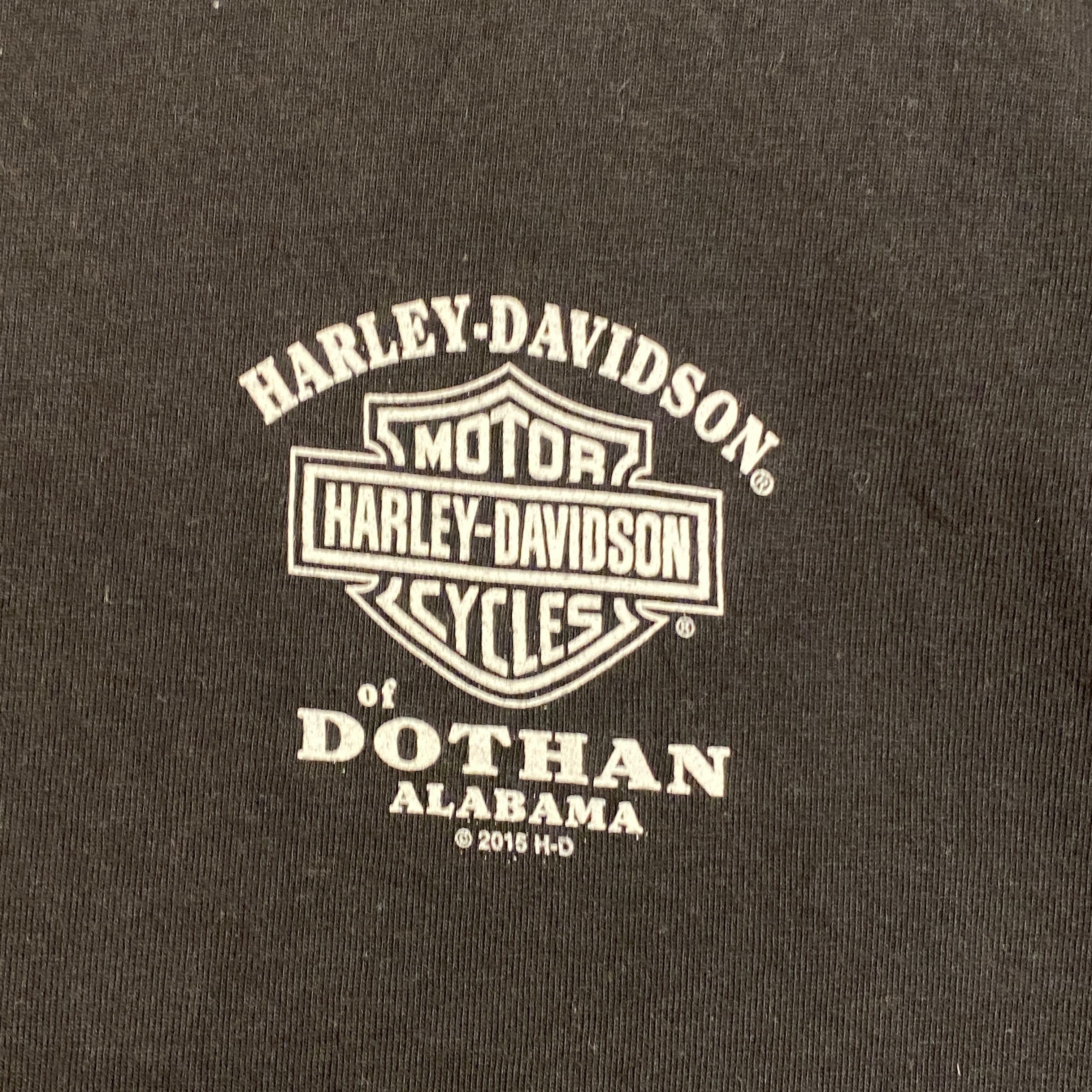 2806 2015s 2017s HARLEY DAVIDSON 両面 プリント Tシャツ アラバマ州 ハーレー ダビッドソン ドーサン 黒 ブラック ロゴ モーターサイクル 古着 メンズ vintage