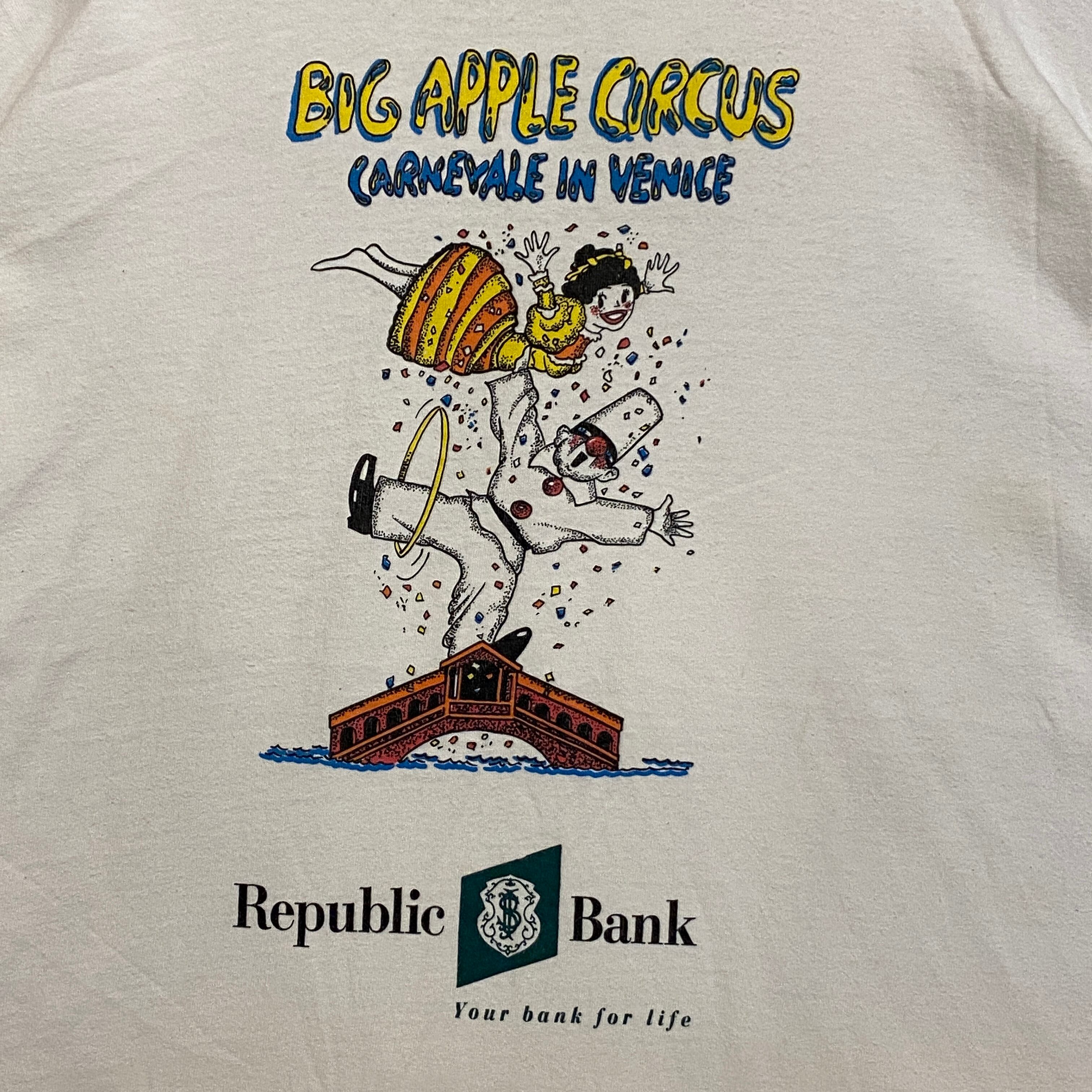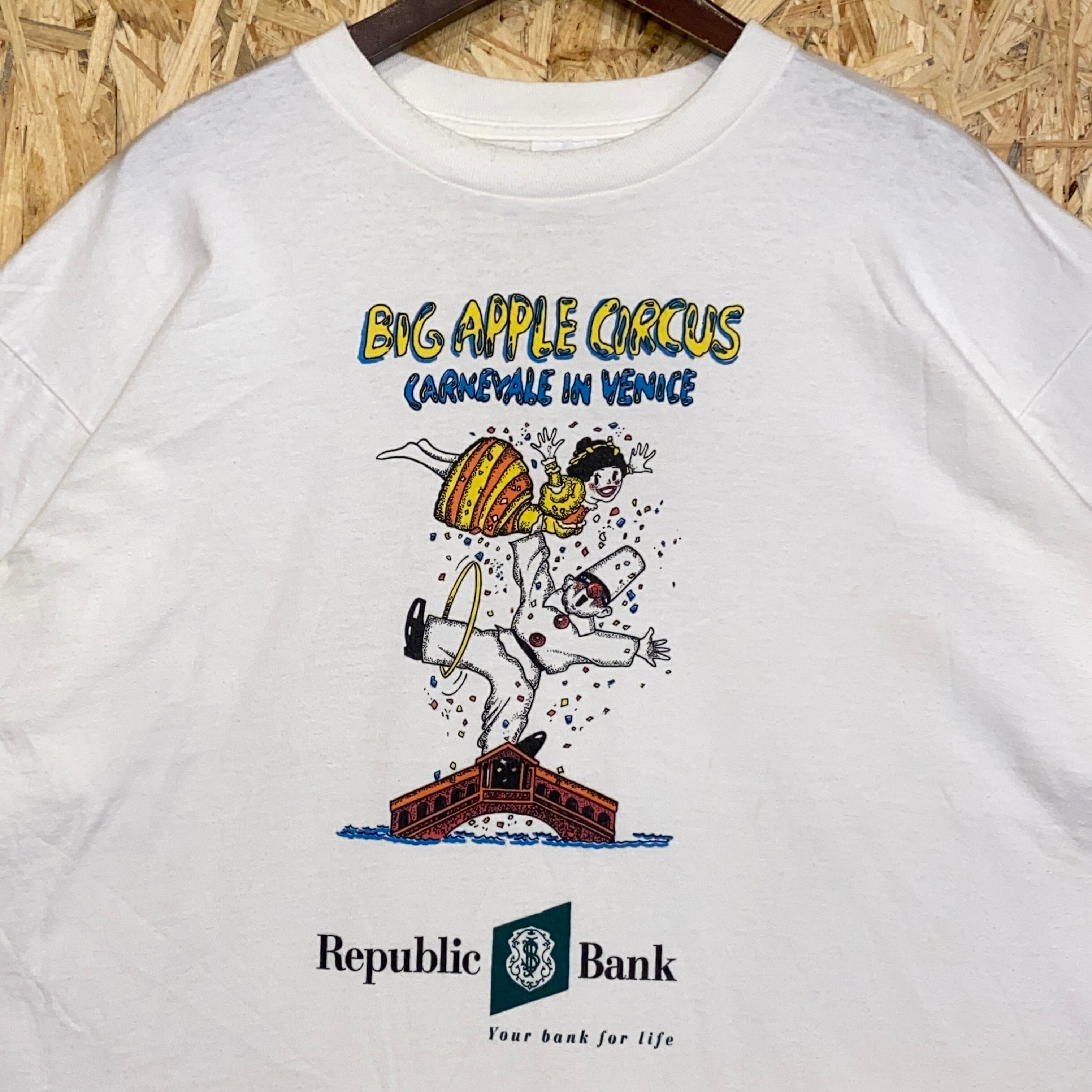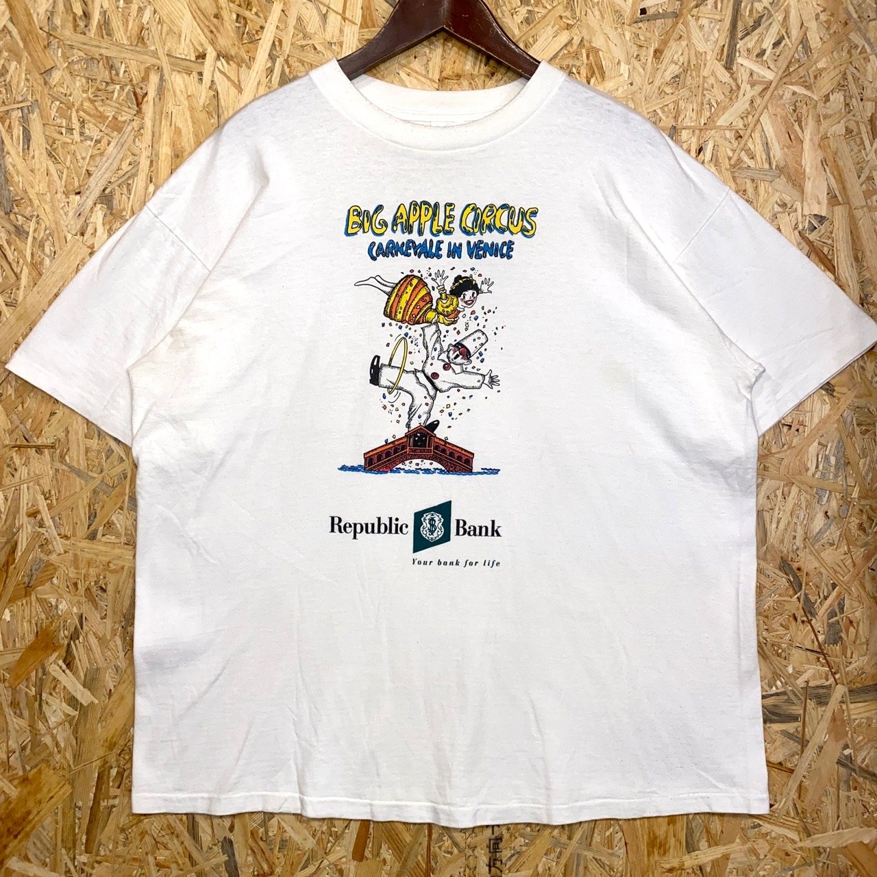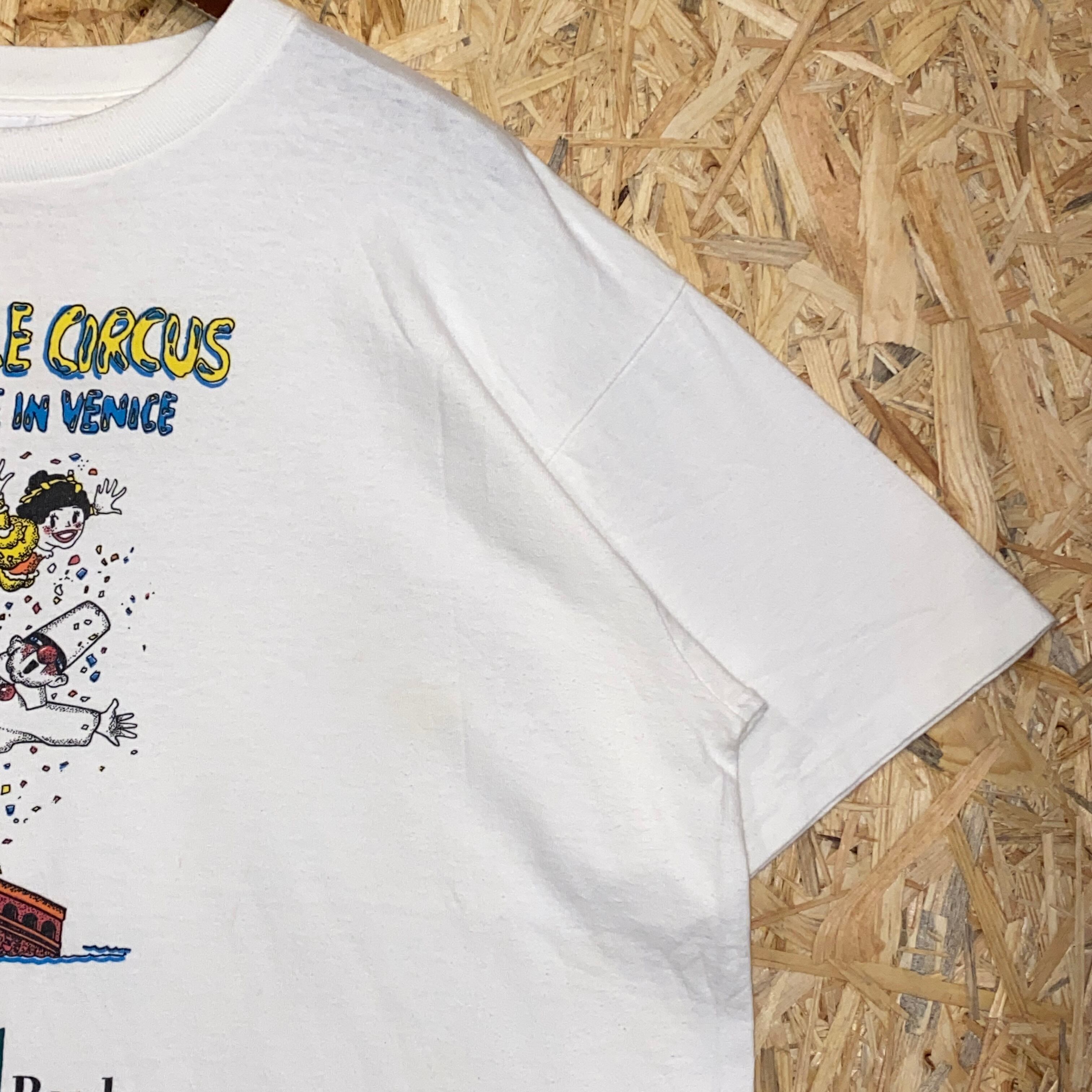 2811 90s 90年代 カーニバル グラフィック デザイン Tシャツ イラスト サーカス ベネチア スポンサー ホワイト 白 シングルステッチ DELTA 古着 メンズ vintage