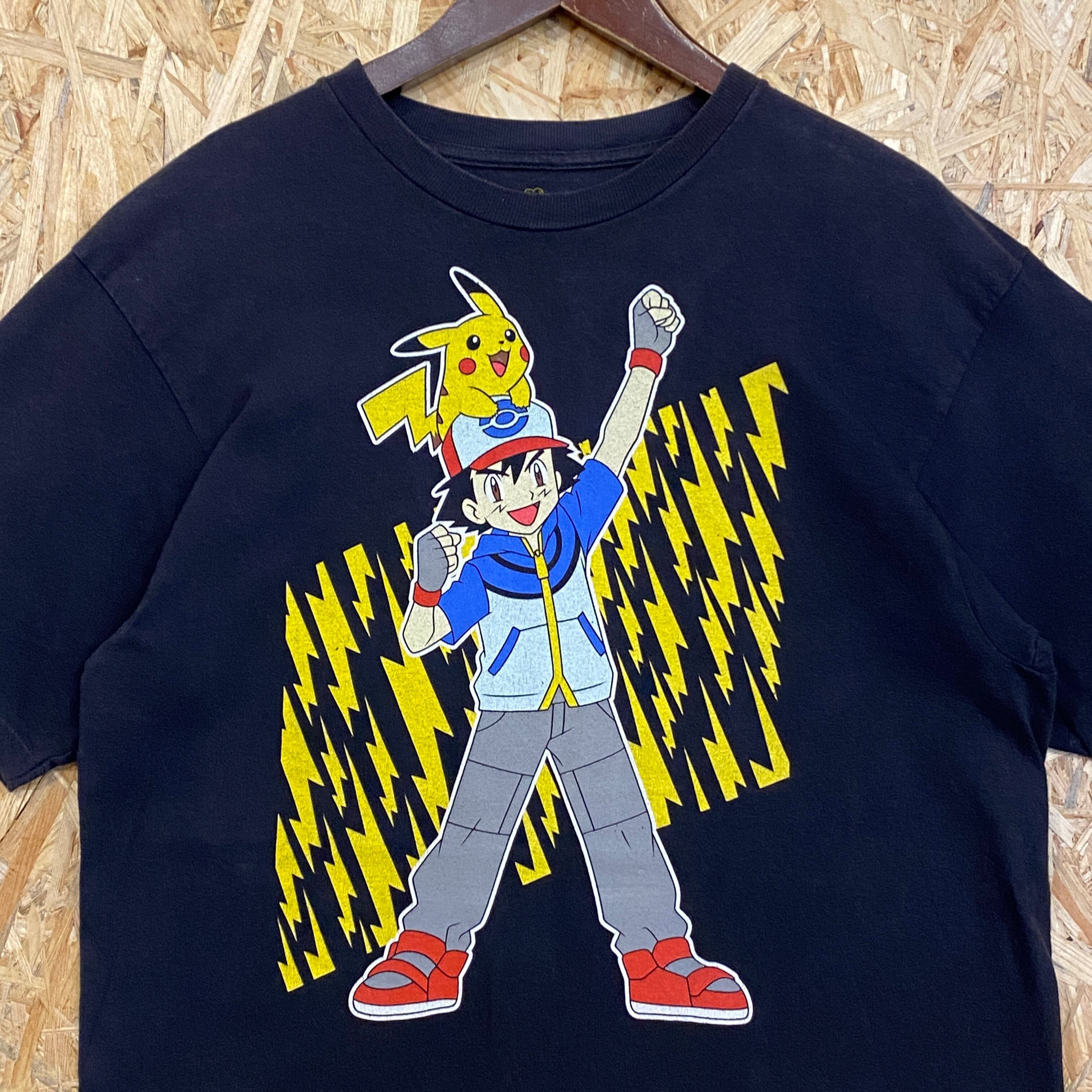 2813 2011s ポケモン プリント Tシャツ ピカチュウ サトシ アニメ キャラクター mf PoKeMoN 黒 ブラック 古着 メンズ vintage