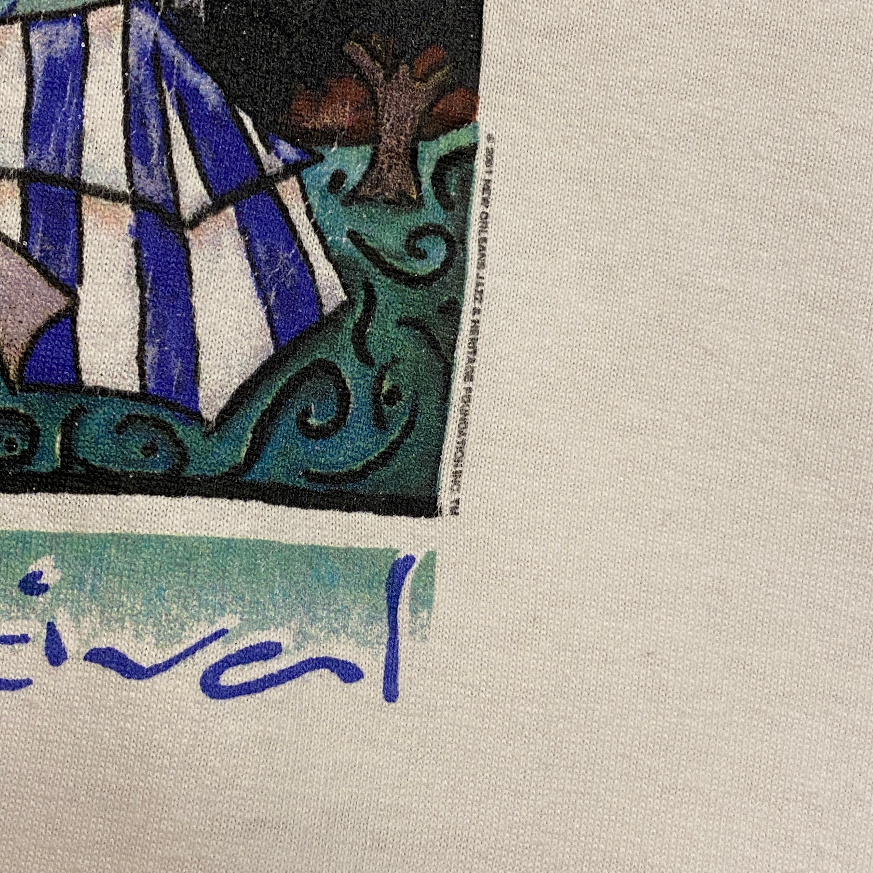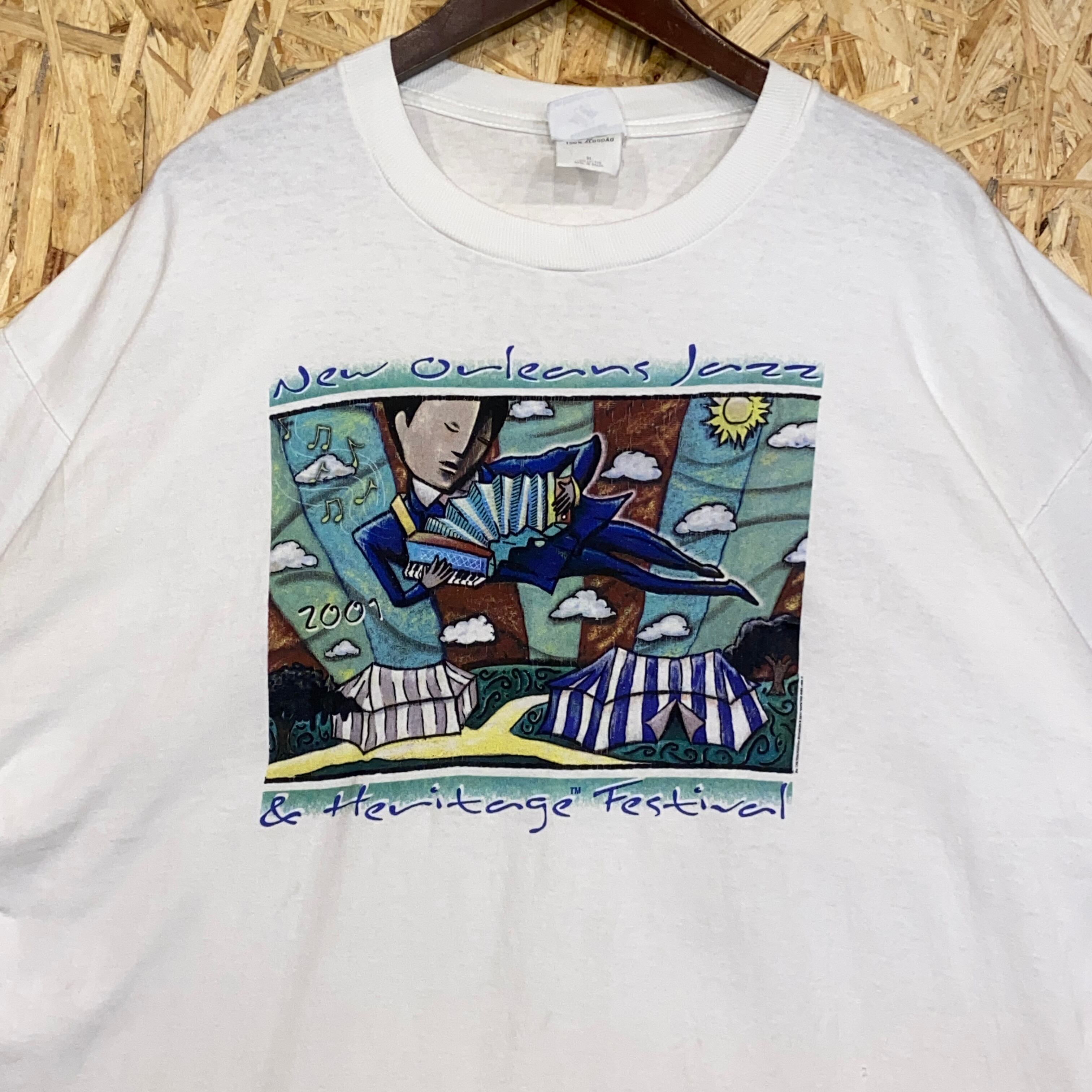 2816 2001s ニューオーリンズ ジャズ ヘリテージ プリント Tシャツ アコーディオン 音楽 JAZZ フェスティバル ホワイト 白 古着 メンズ vintage 00s 00年代