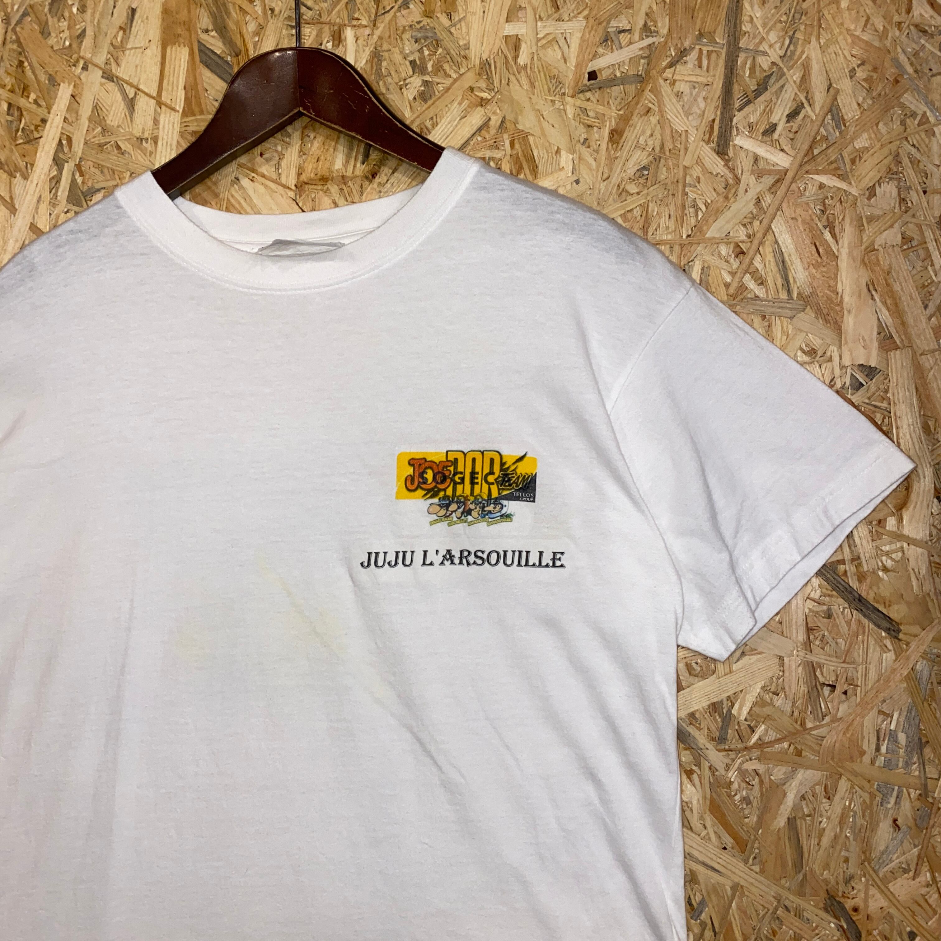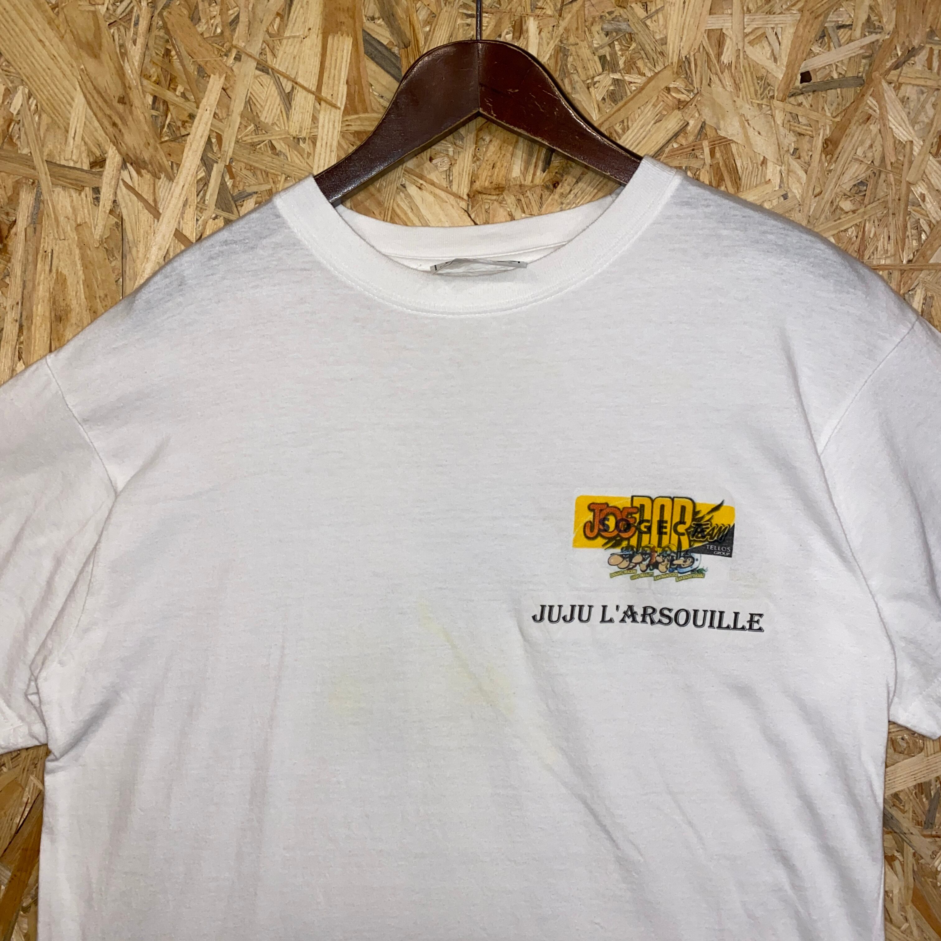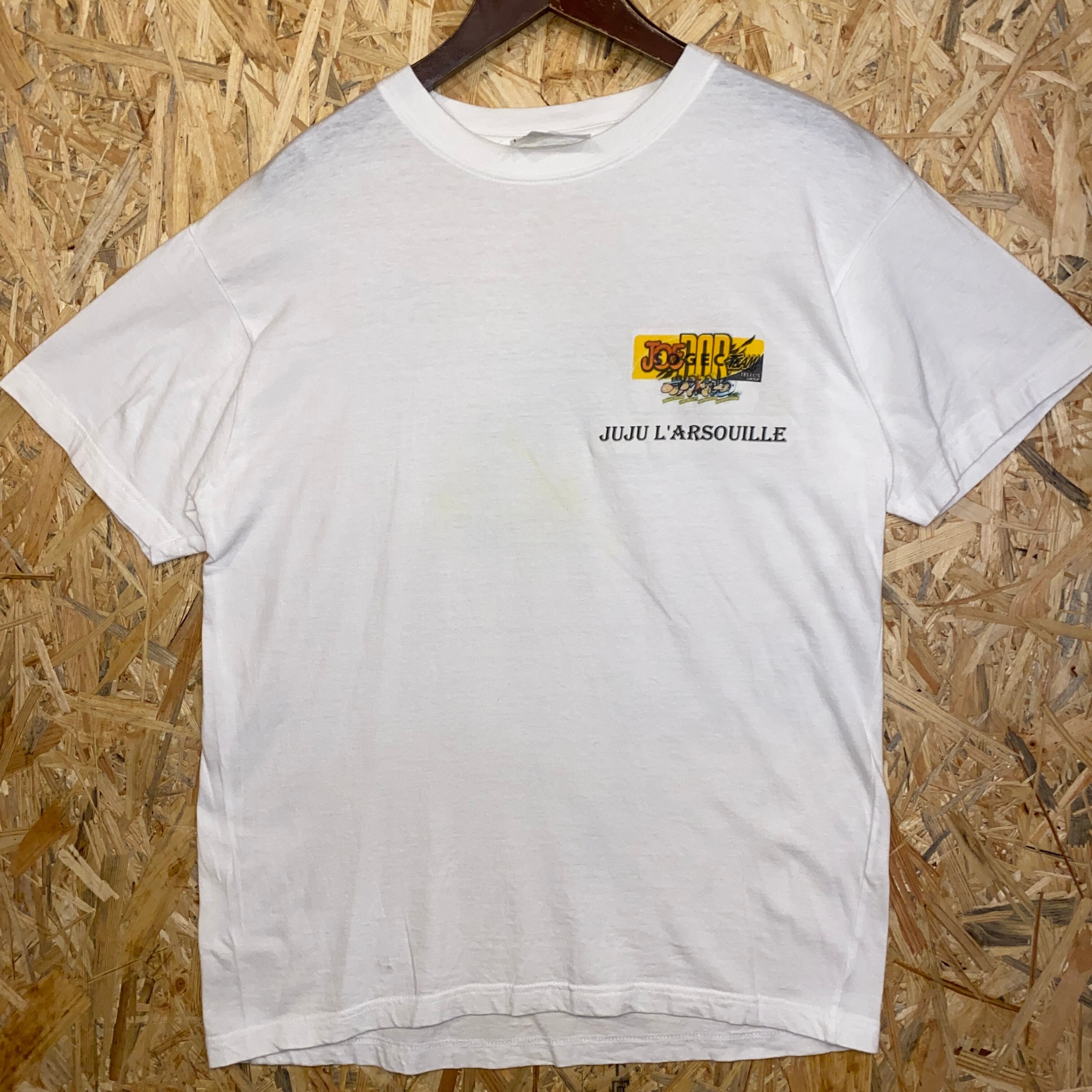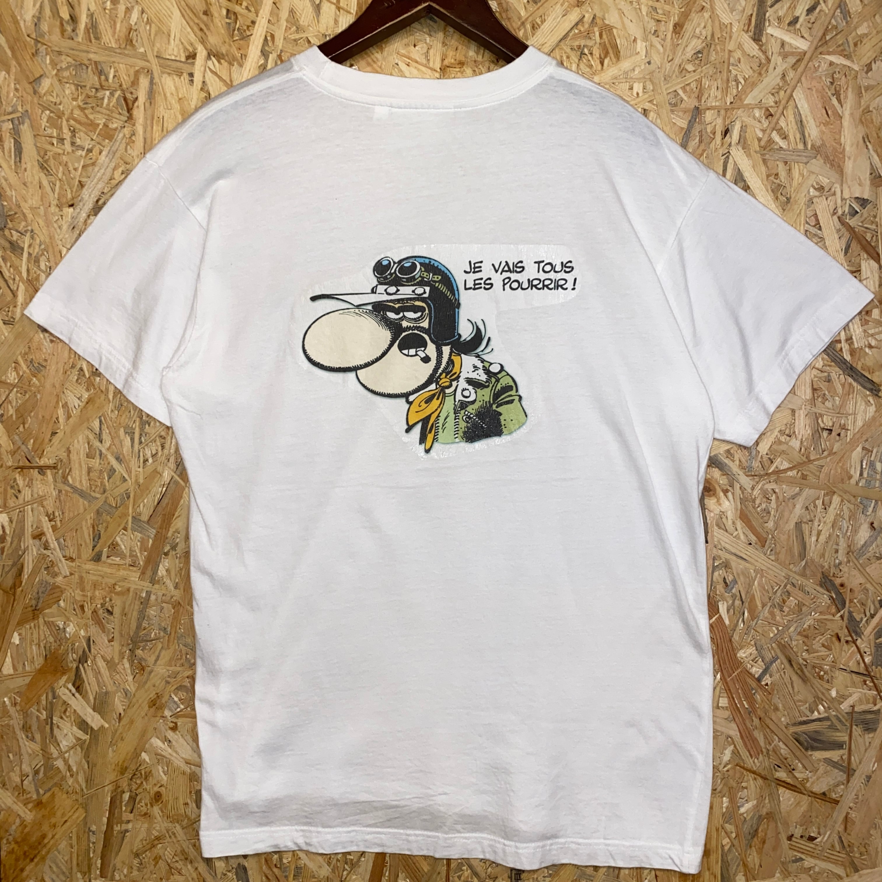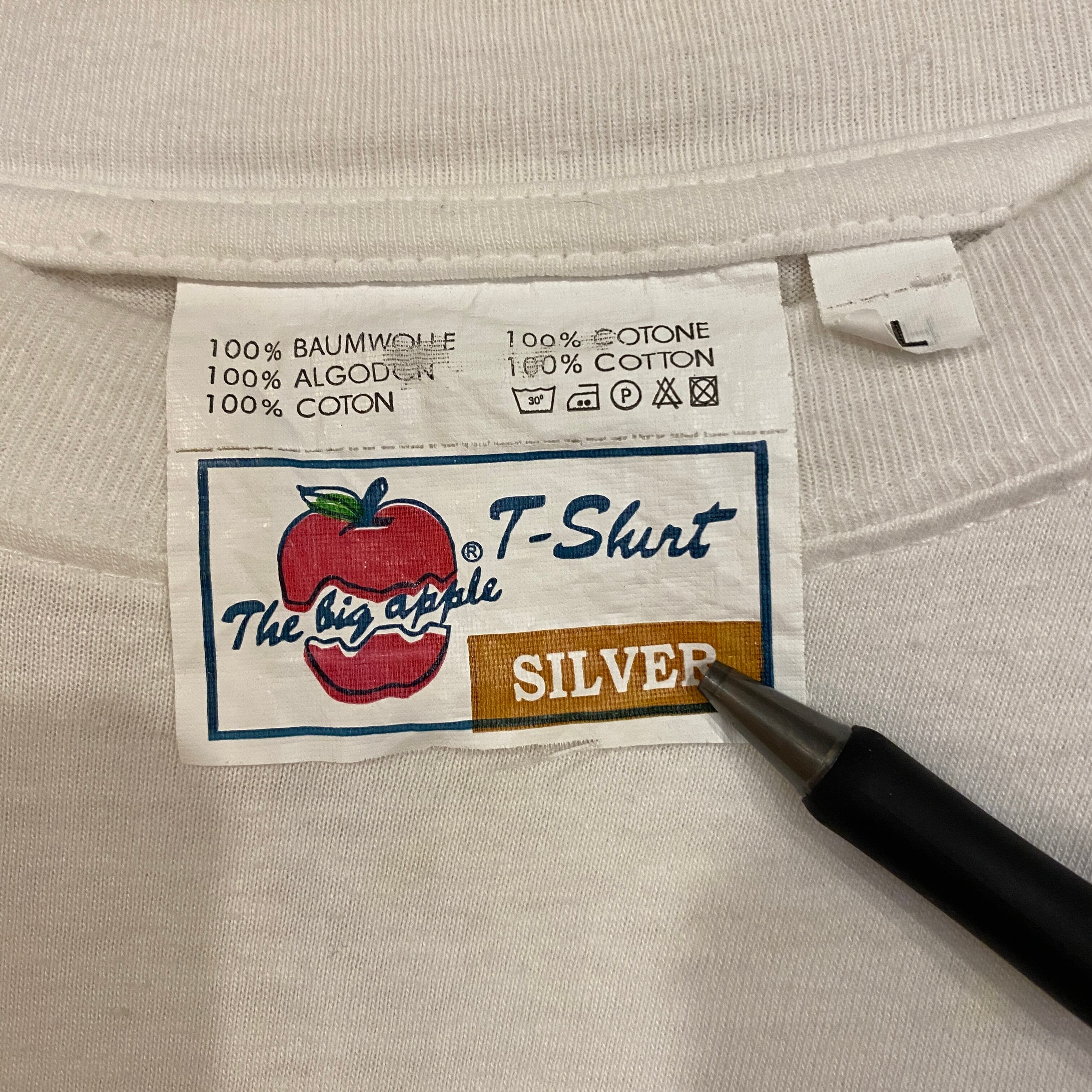 2825 90s〜 90年代〜 The big apple T-Shirt SILVER パイロット フランス語 両面プリント グラフィック 白Tシャツ 古着 メンズ vintage
