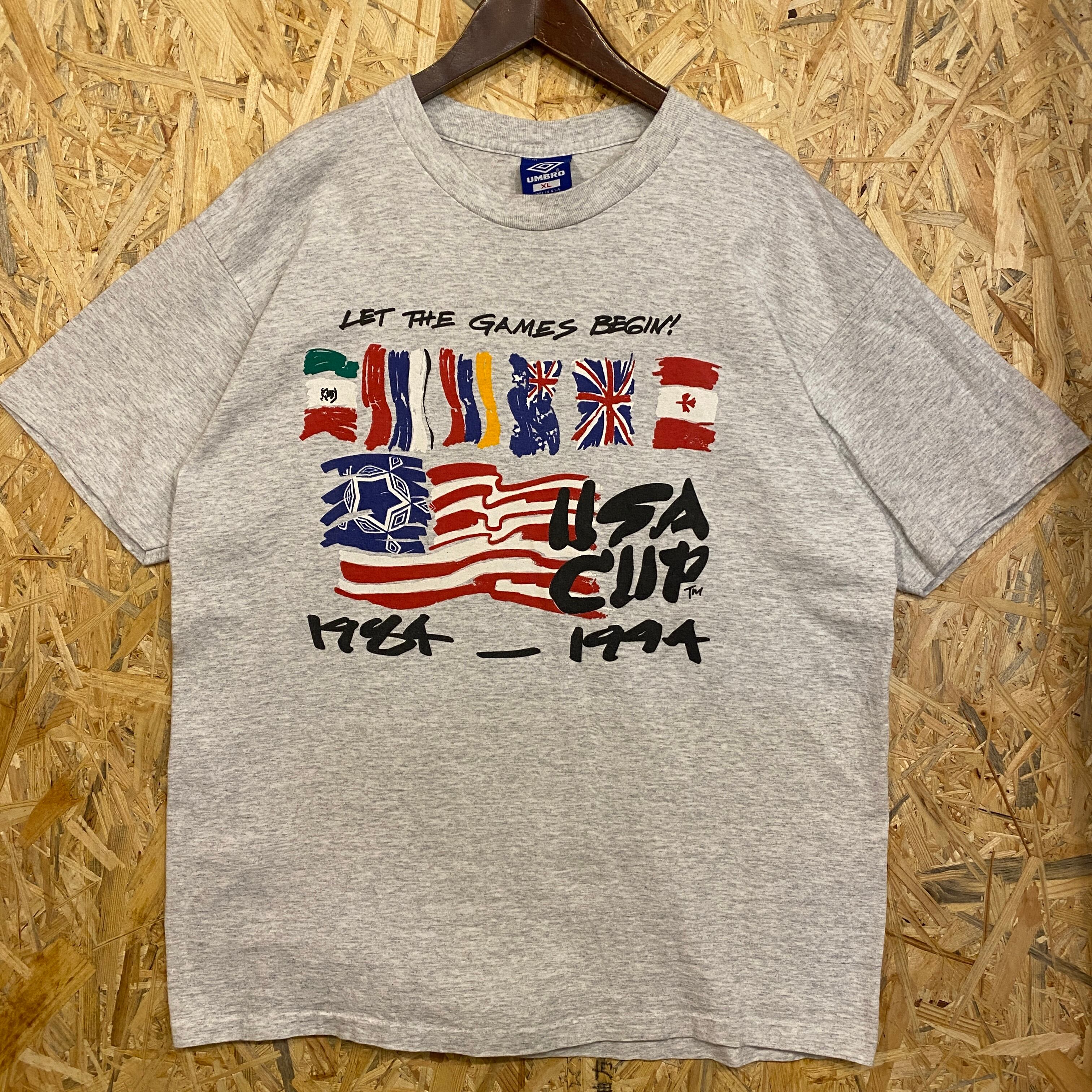 2827 90s 90年代 シングルステッチ USA製 アンブロ UMBRO 国旗 イベントTシャツ 両面プリント 灰色 グレー 古着 メンズ vintage
