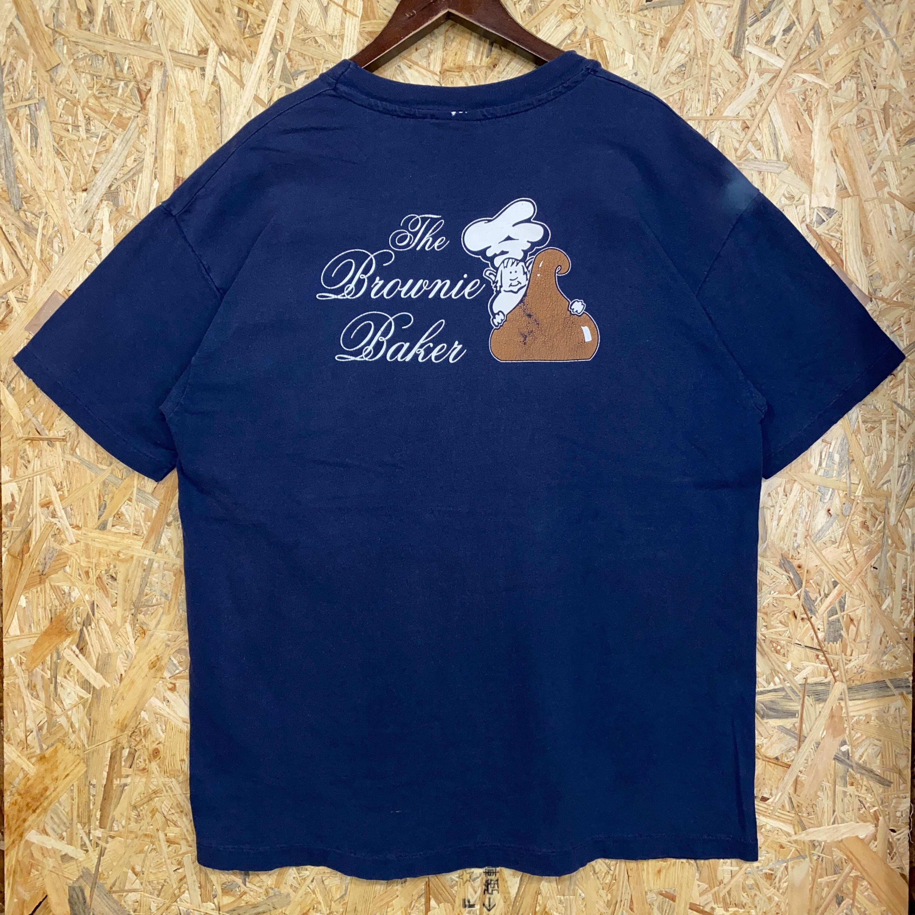 2839 90s〜 90年代〜 Hanes ヘインズ バックプリント Tシャツ ロゴ The Brownie Baker 紺色 ネイビー 古着 メンズ vintage