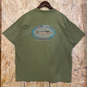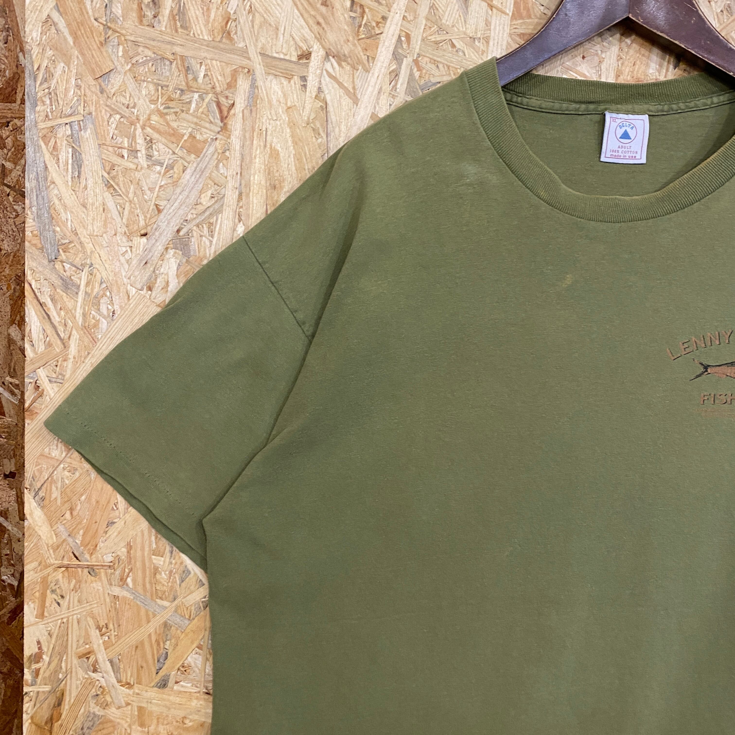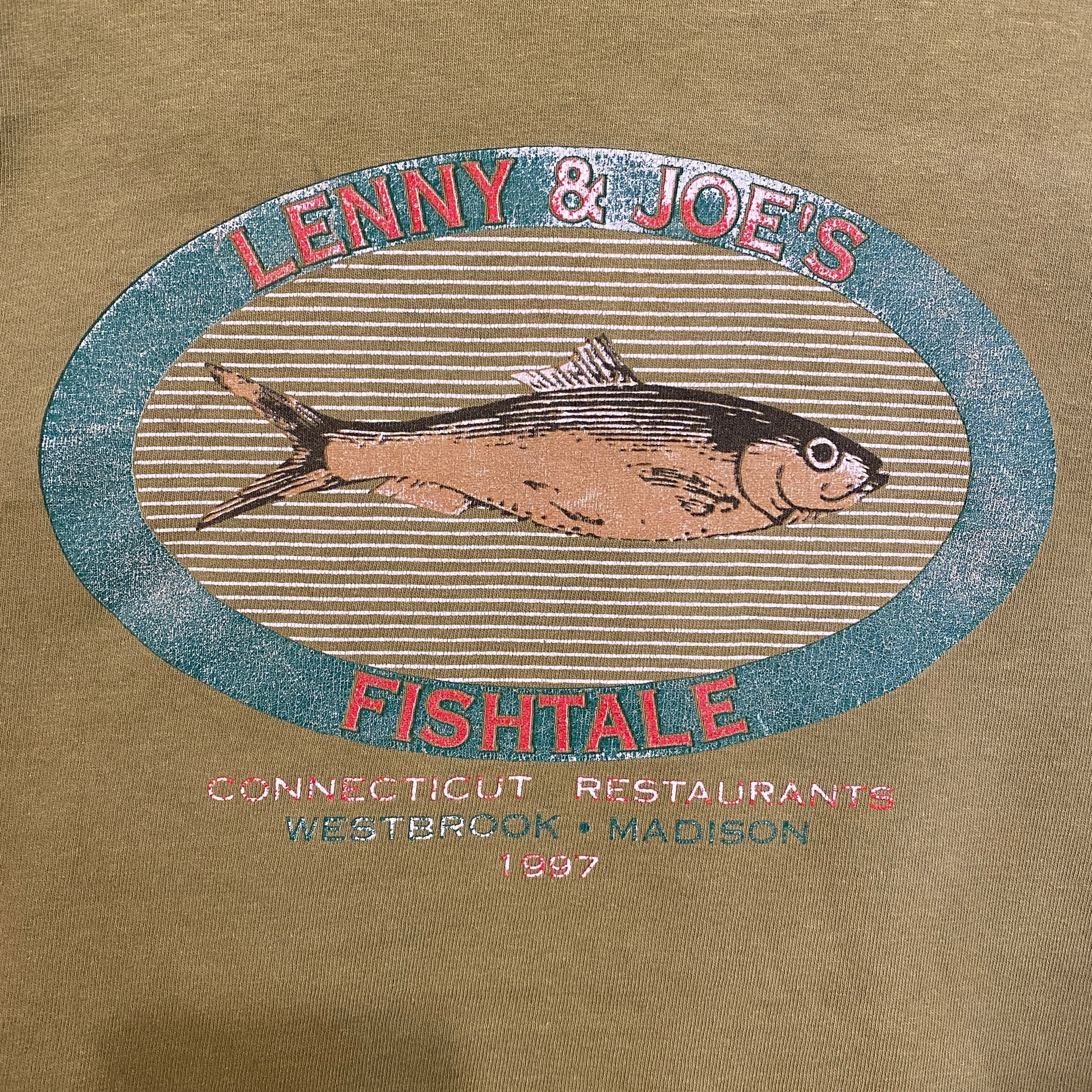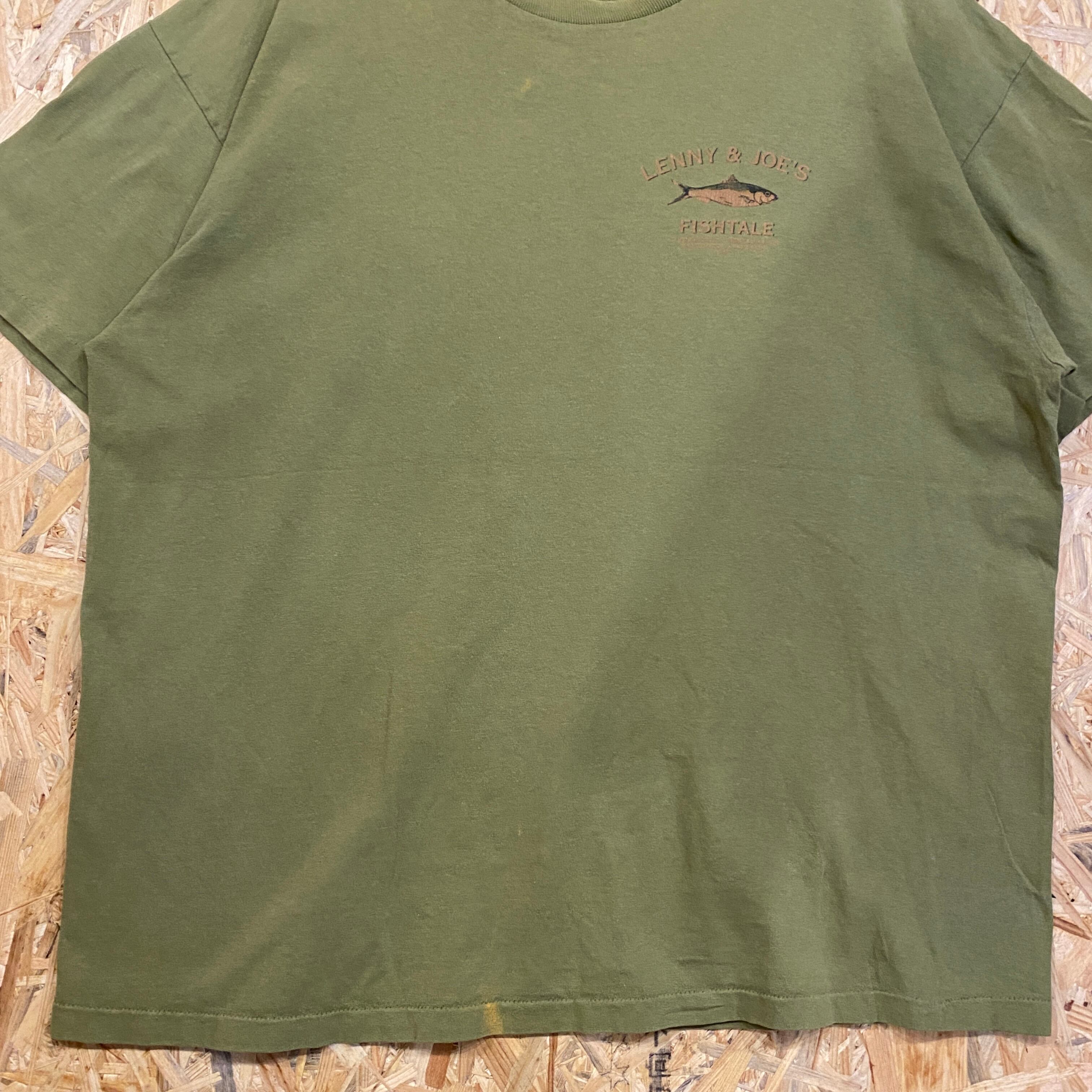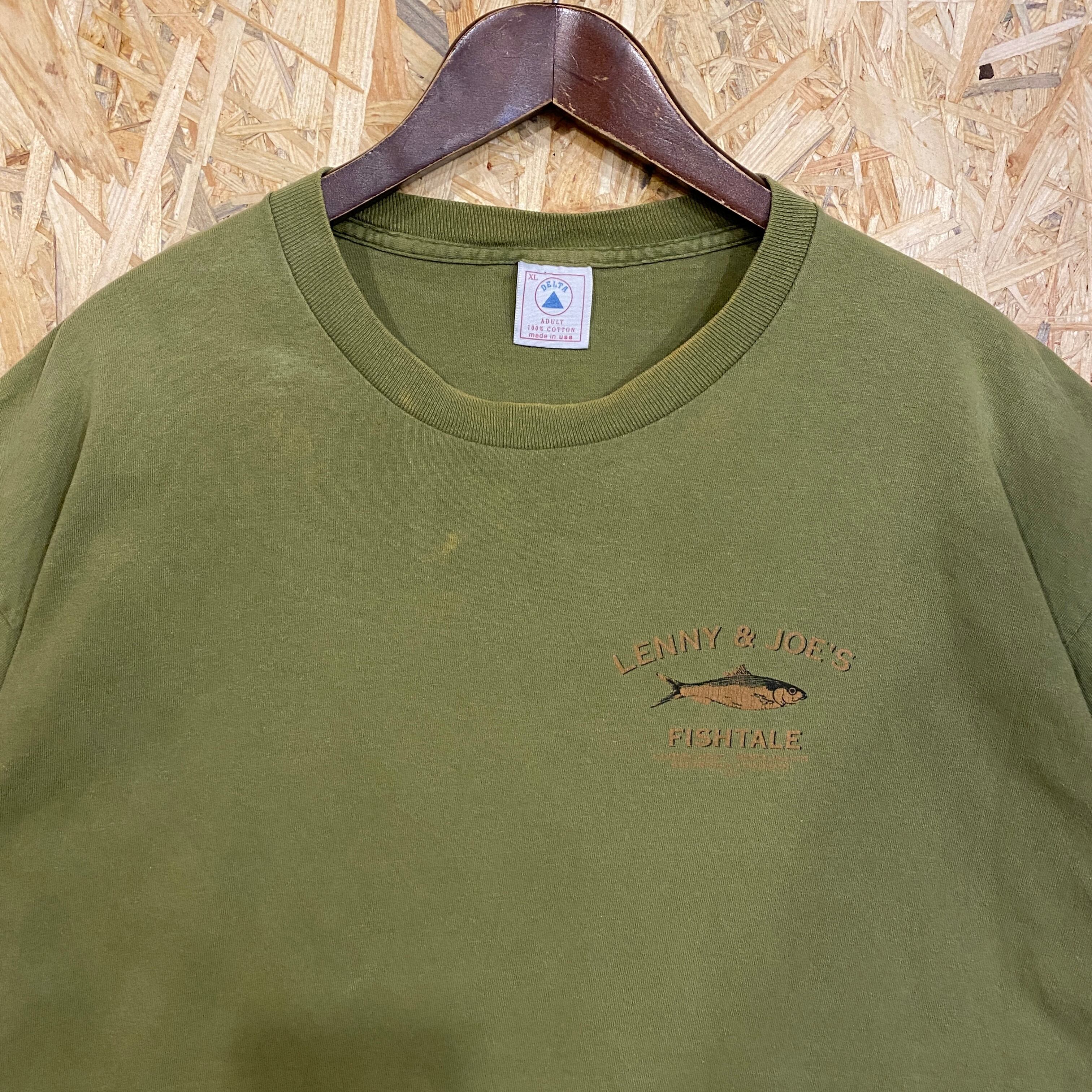 2845 90s〜 90年代〜 USA製 DELTA デルタ 両面プリント Tシャツ 魚 レストラン コネチカット州 カーキ 緑 古着 メンズ vintage 1997s