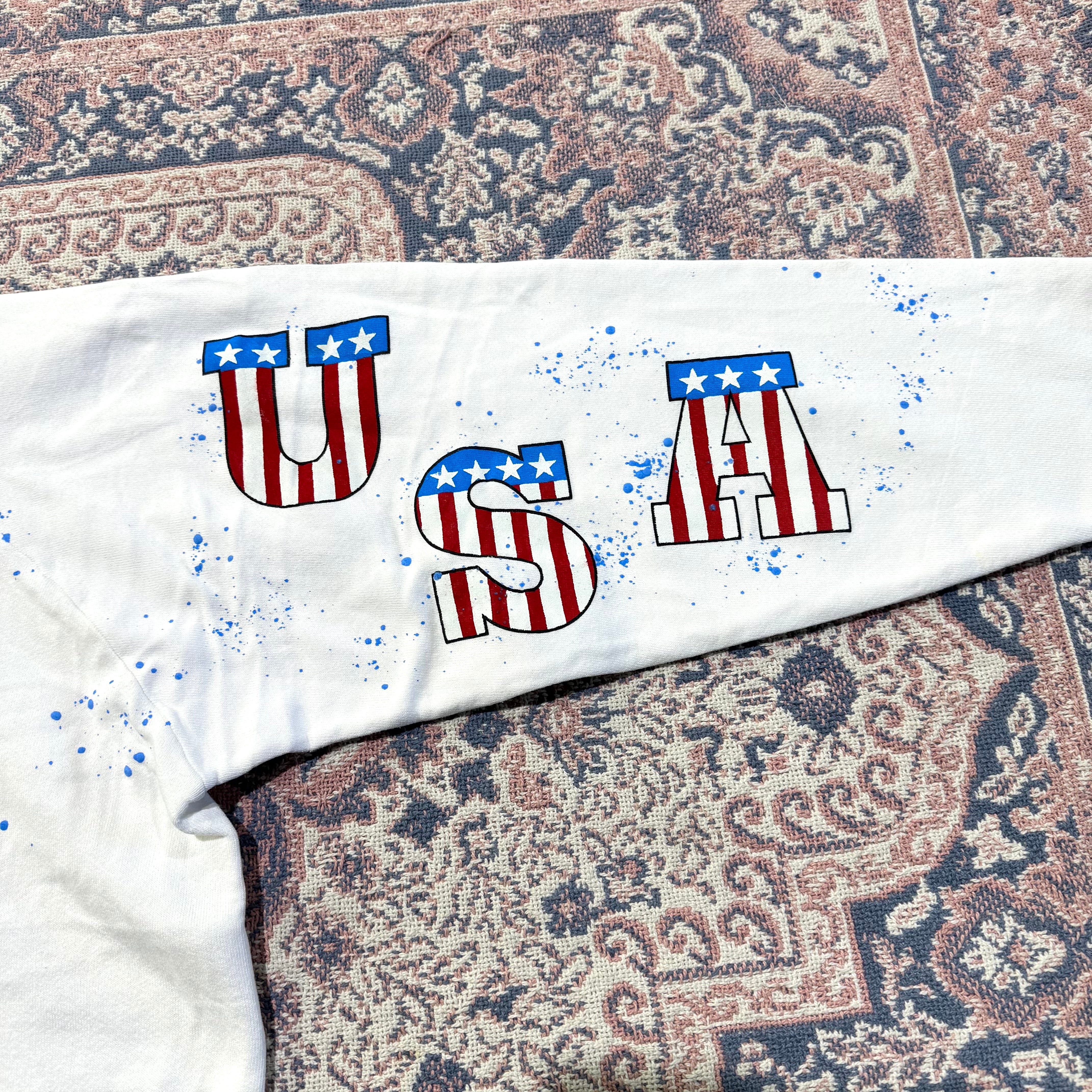 573 90s 90年代 湾岸戦争 スウェット トレーナー ARMY アメリカ軍 星条旗 イーグル ラグランスリーブ ペンキ vintage 古着 メンズ