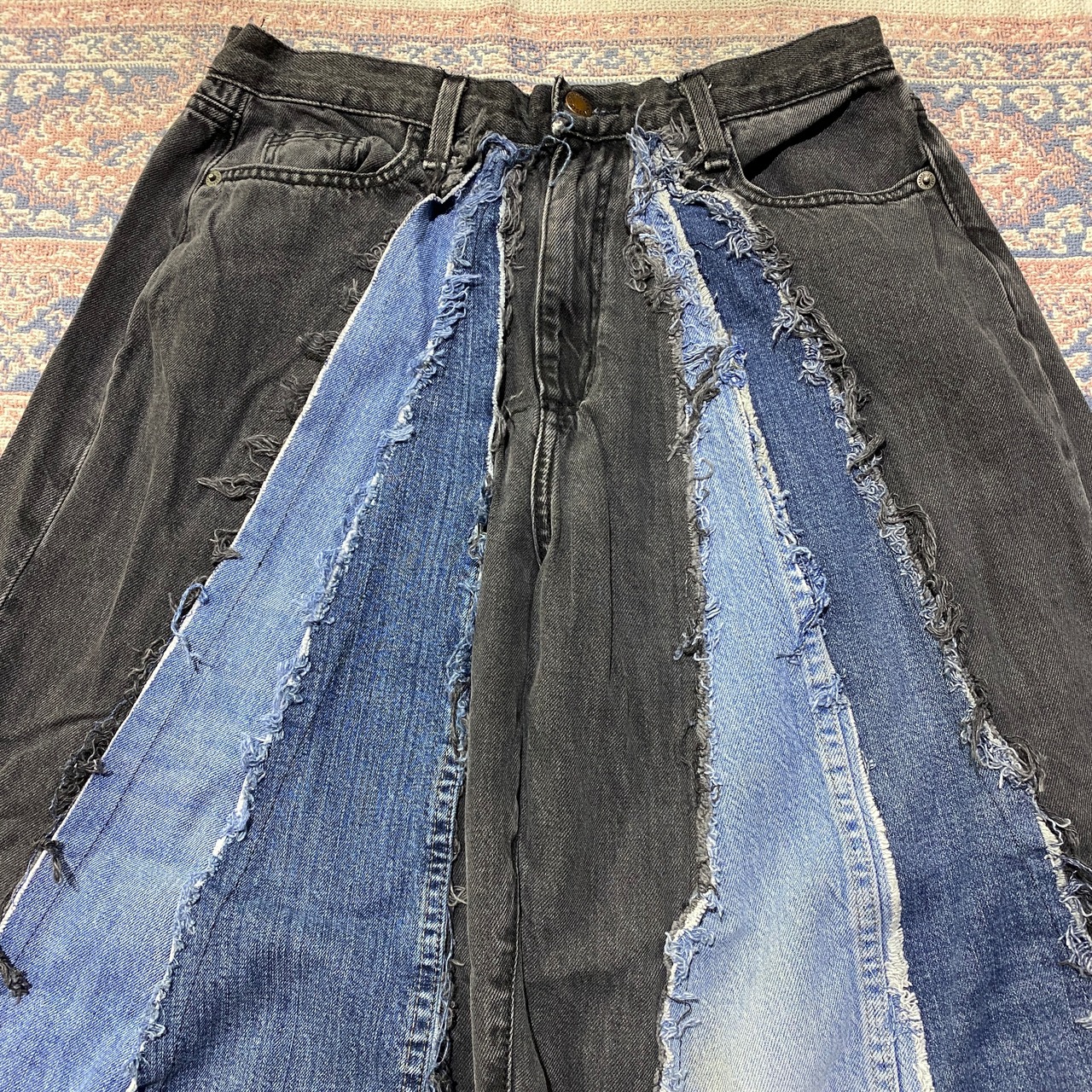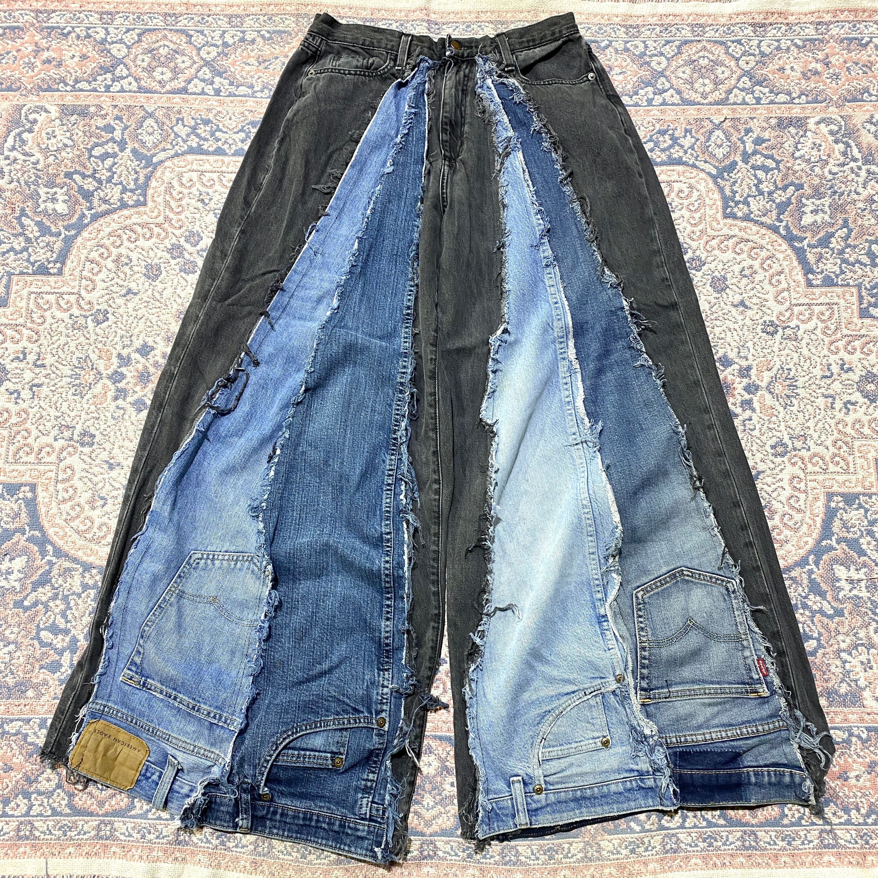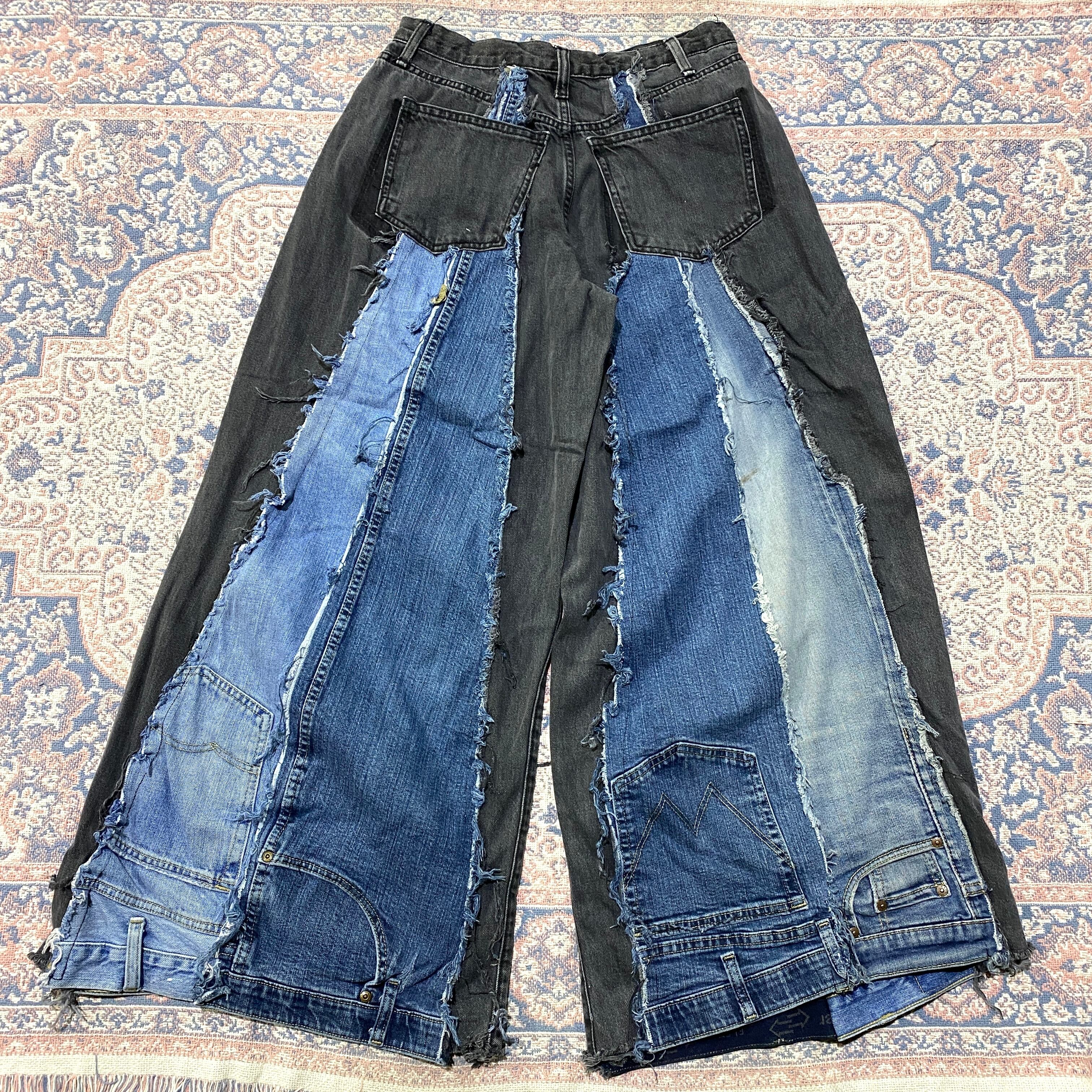 ブラック リメイク デニムパンツ 再構築 後染め メンズ 古着 ブラックデニムパンツ フレアパンツ