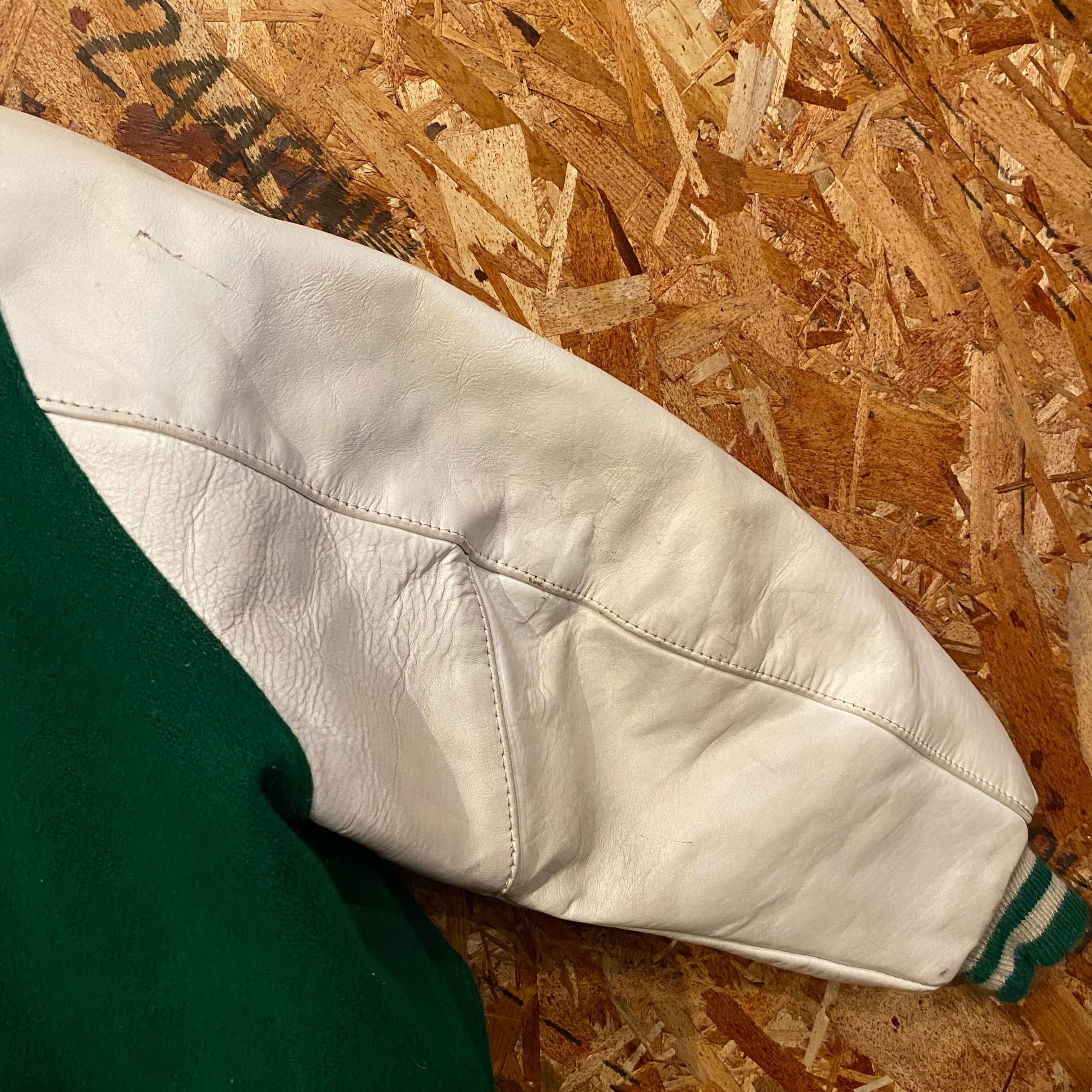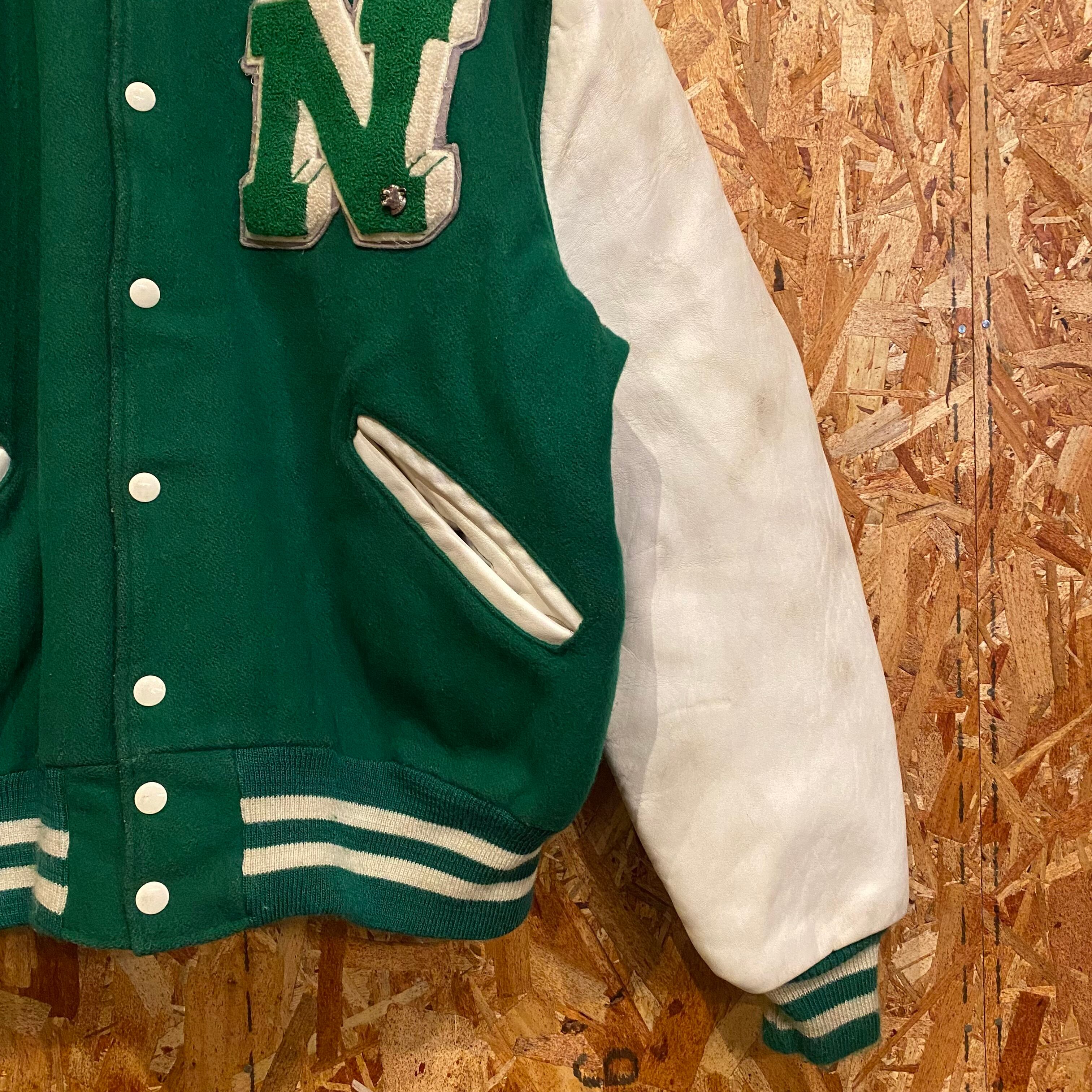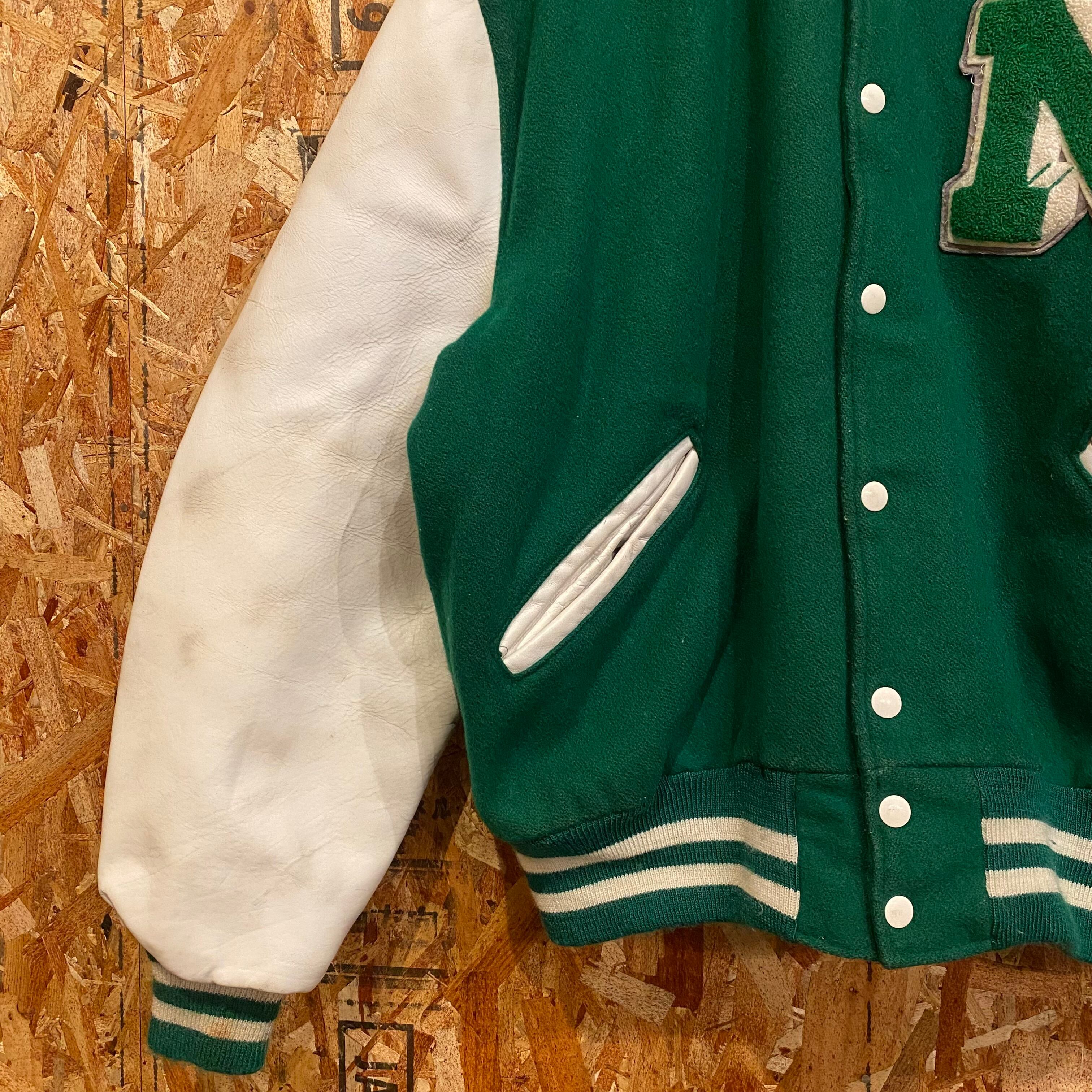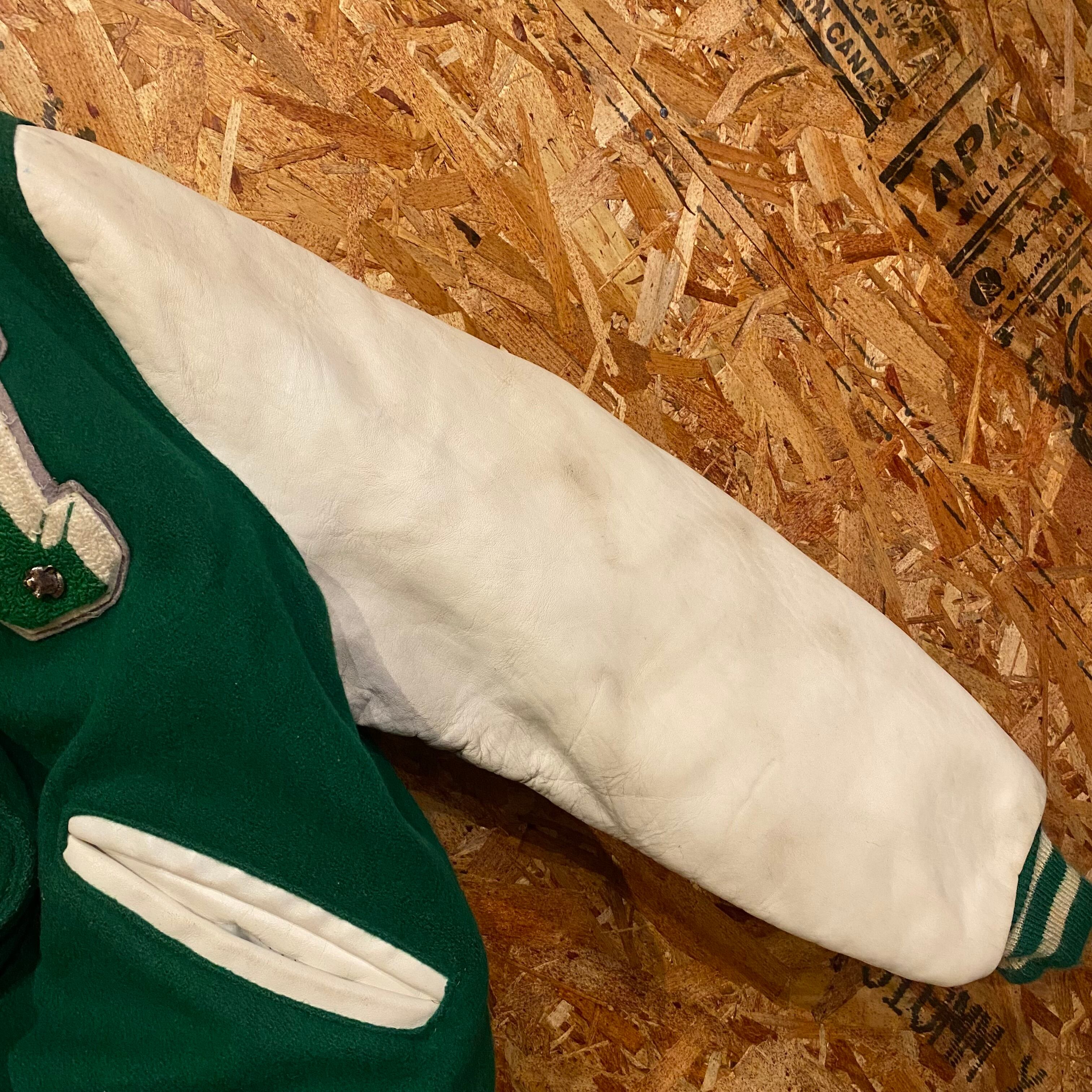 616 80s 80年代 USA製 DeLONG スタジャン デロング ウール ジャケット 古着 メンズ vintage 70s 袖レザー 切替