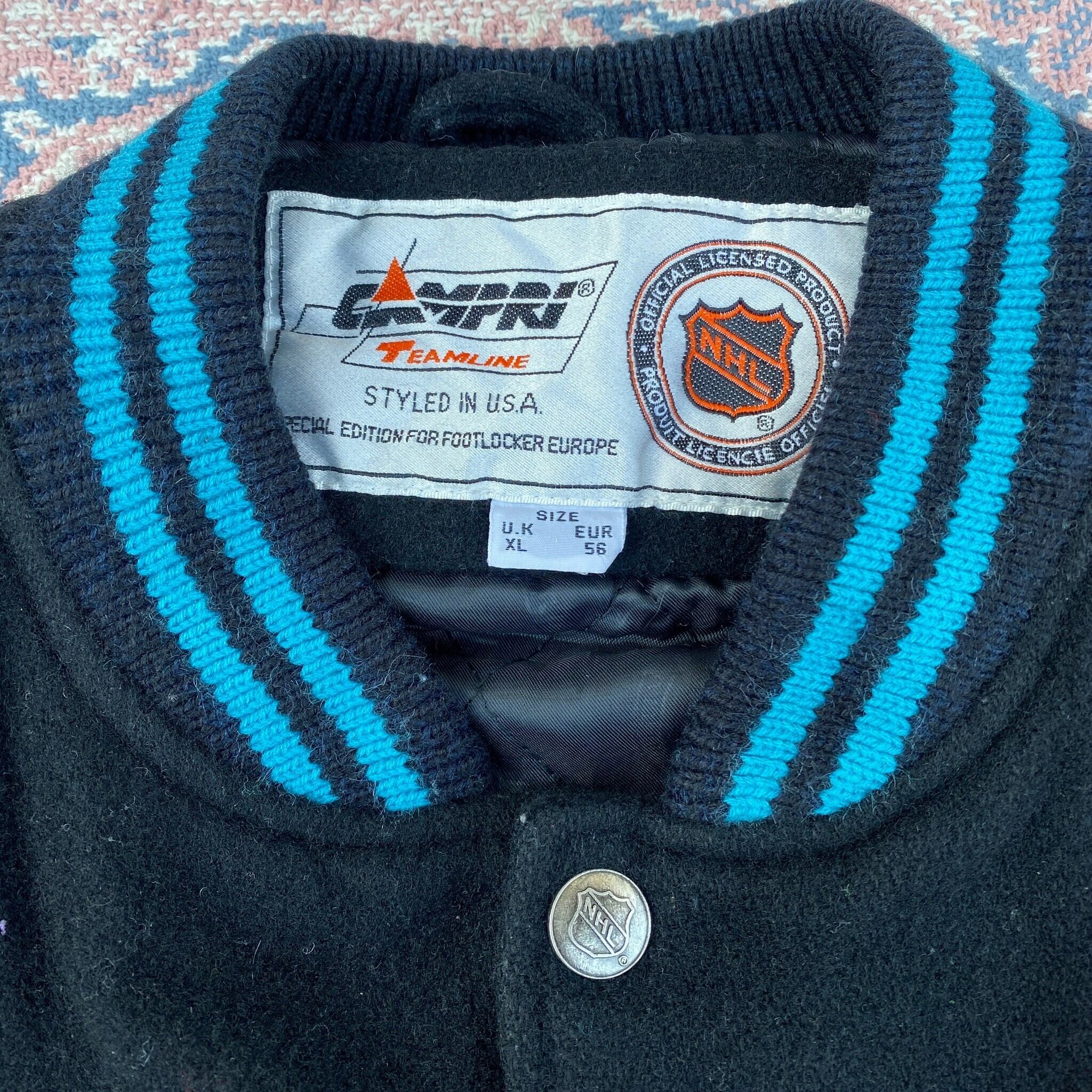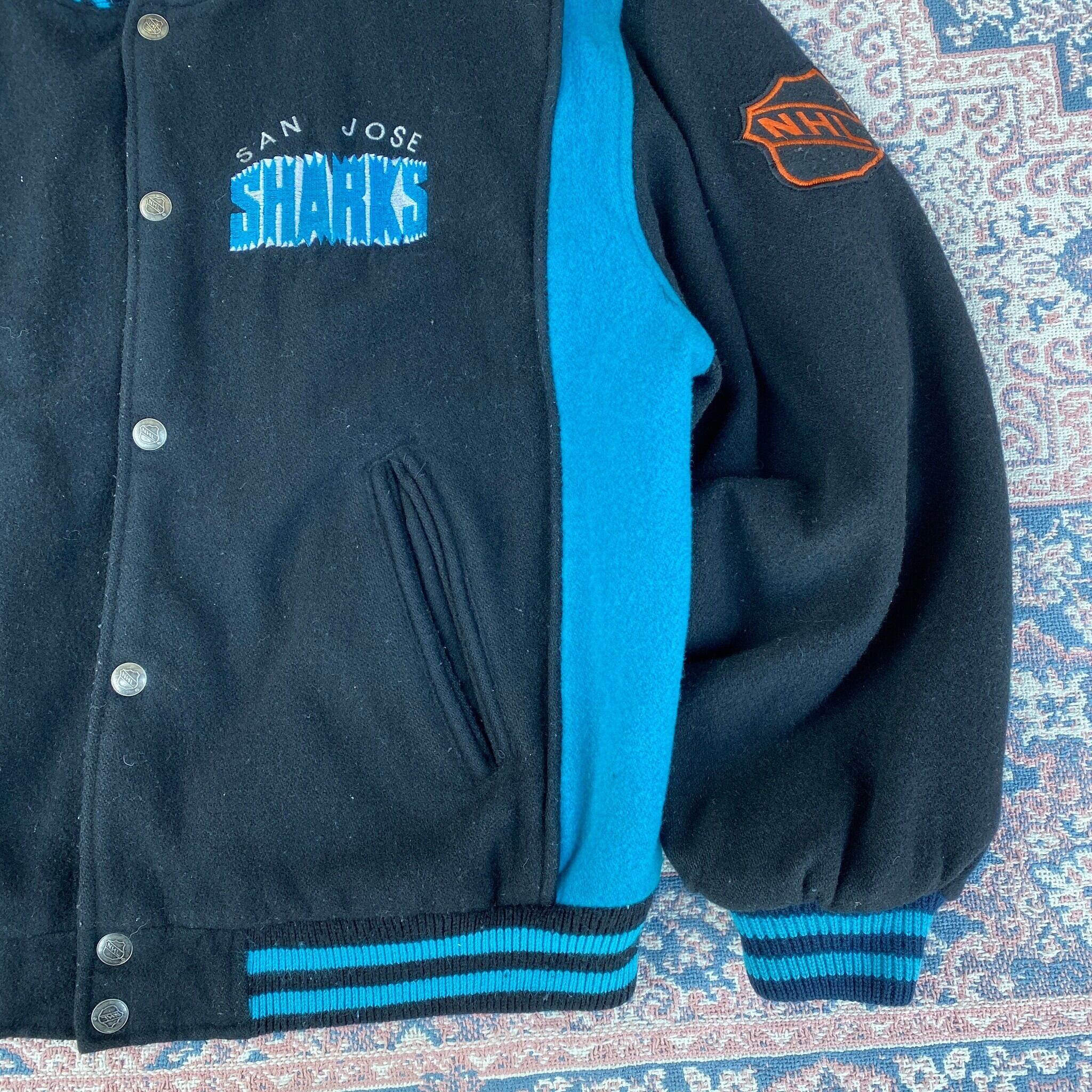 617 90s〜 90年代〜 USA製 NHL SAN JOSE SHARKS サンノゼ シャークス ウール ジャケット スタジャン メンズ 古着 vintage
