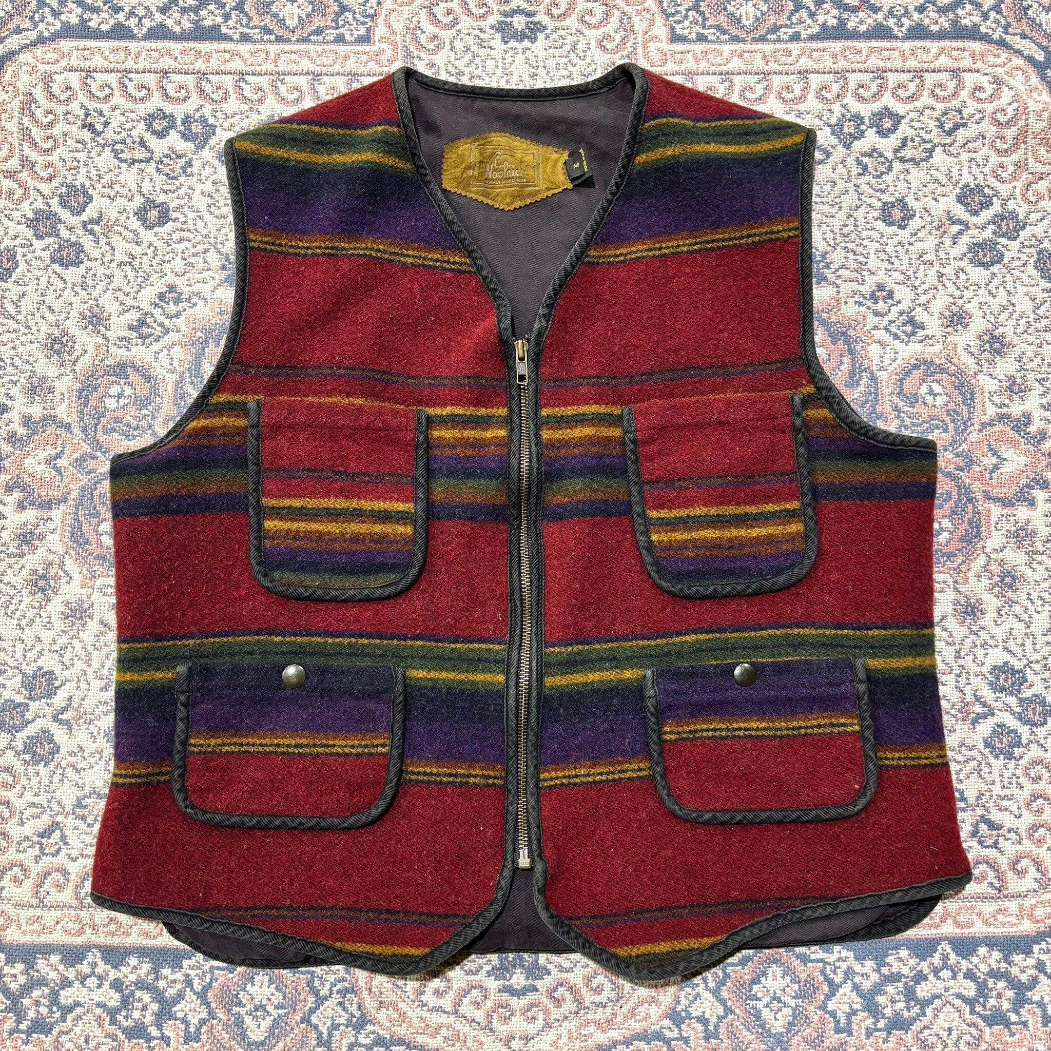 760 90s 90年代 USA製 Woolrich ウール ツイード ベスト ウールリッチ ボーダー 古着 メンズ vintage